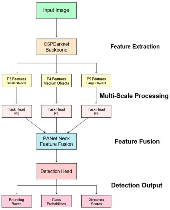 The YOLO family of object detection architectures has evolved significantly since its introduction, with each iteration bringing improvements in accuracy, speed, and feature extraction capabilities. Redmon and Farhadi [] introduced YOLOv3, which incorporated residual networks and feature pyramid networks to improve detection accuracy across objects of varying scales. The chosen architecture revealed particular strength in detecting small objects, a critical capability for landmine detection applications where targets may occupy a small portion of the image frame.