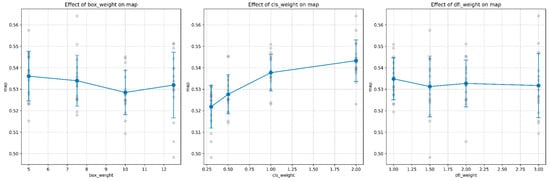 The grid search implementation explored combinations of the three primary loss function weights in the YOLOv8 architecture: