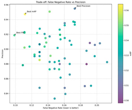 Based on our prioritization of minimizing false negatives while maintaining acceptable precision for landmine detection, we selected the configuration labeled “Best FN” as optimal.