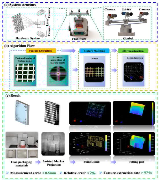 In response to the challenges mentioned above, this study proposes an environmental perception solution based on sparse point cloud reconstruction, integrating binocular vision with laser-assisted marking. The method is designed to enhance 3D perception in complex industrial scenarios characterized by weak textures and Gaussian blur, aiming to achieve fast, accurate, and robust environmental understanding for robots operating under such conditions. This solution features low cost, minimal computational resource consumption, and a compact structure, while also enabling fast and accurate positioning and operation for compact, low-cost robots in texture-deficient environments. The specific components of the proposed method are outlined as follows:
