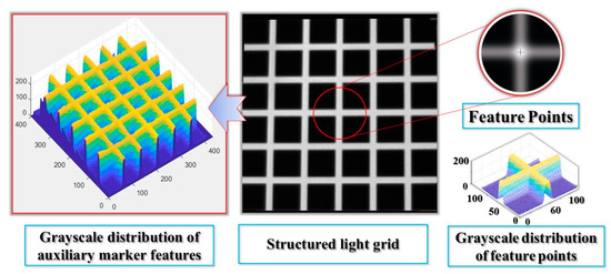 Additionally, considering the directionality and collimation of the light strips, as well as the invariance of line intersections under perspective projection, the intersection of the center points of the horizontal and vertical light strips represents the sub-pixel accurate position of the feature point.