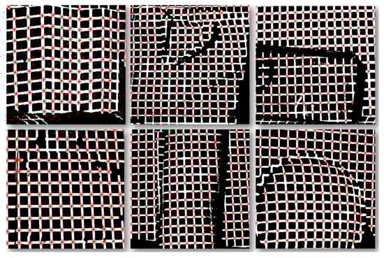 Multiple methods were used to extract features from the same image (Containing 208 intersection points of the horizontal and vertical light strips, which are the actual feature points), and the results are shown in Table 2. The “Total” column represents the total number of feature points extracted by each method, including both valid and invalid points. The “Effective extraction number” column shows the number of valid data points, and the effective extraction rate (%) is calculated based on the proportion of valid points to the num of actual feature points. As shown in the table, although methods such as SIFT, SURF, and KAZE have high extraction rates, they are slower and generate more invalid data. Methods like ORB and FAST are faster but have lower effective extraction numbers, failing to meet the requirements. In contrast, the FLM demonstrates higher accuracy in extracting feature points at grid intersections, generates fewer invalid data, and achieves a better balance between extraction speed and accuracy.