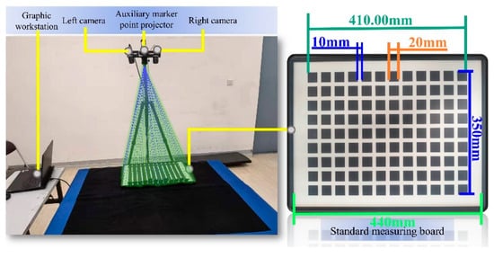 This experiment uses a high-precision standard plate with an error margin of 0.01 mm to verify the accuracy of auxiliary feature point extraction and 3D reconstruction. The experimental setup is shown in the Figure 15 below: