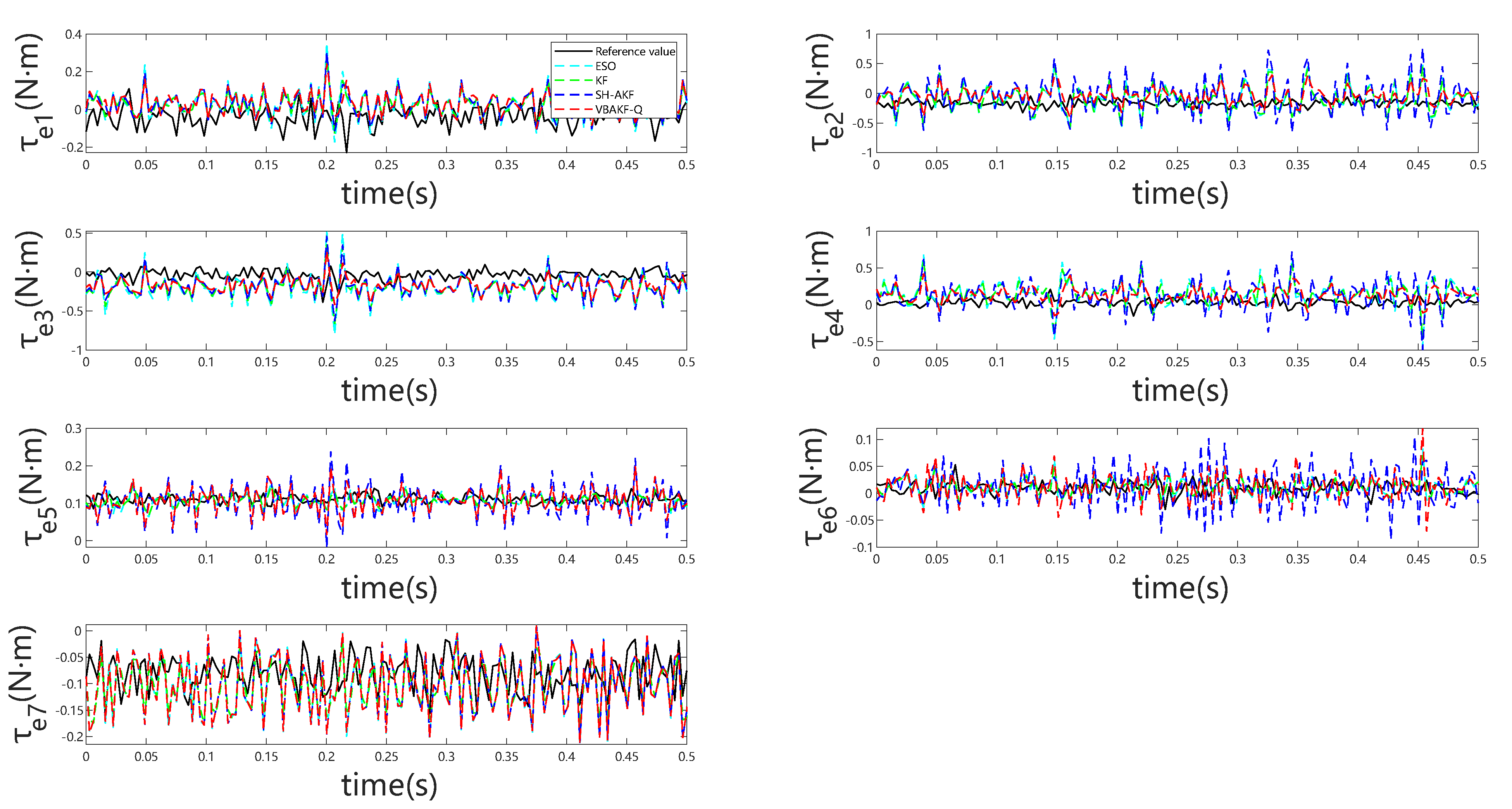 In recent years, extensive efforts have been devoted to adaptive Kalman filtering algorithms and external torque estimation [