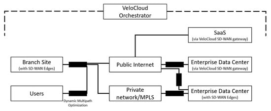 27. Diaz, C.J.M.; Andrade-Arenas, L.; Arellano, J.G.U.; Lengua, M.A.C. Analysis about Benefits of Software-Defined Wide Area Network: A New Alternative for WAN Connectivity. Int. J. Adv. Comput. Sci. Appl. 2022, 13, 757–767. [Google Scholar] [CrossRef]