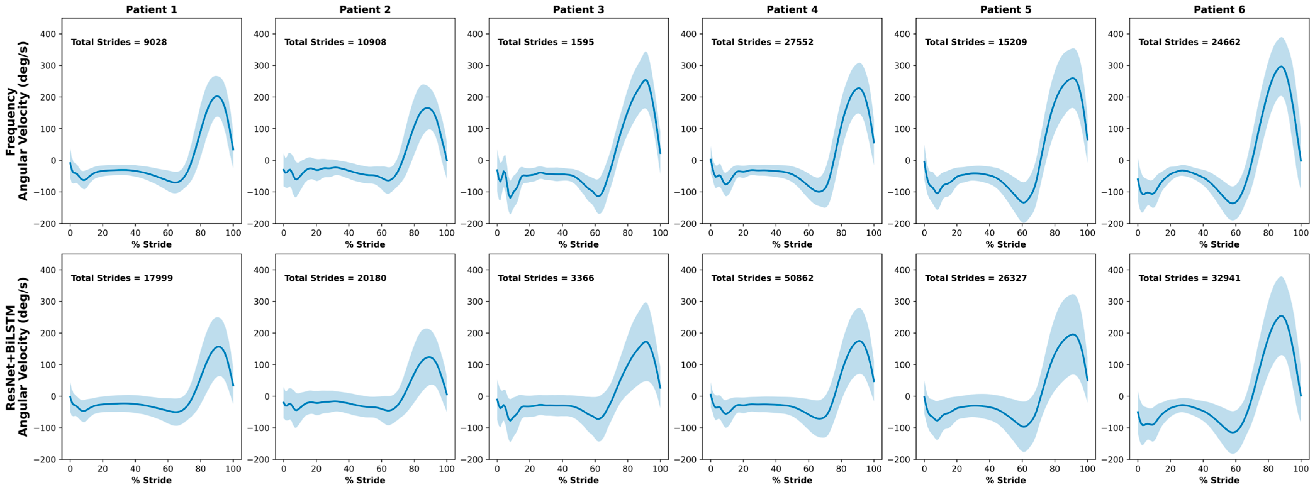 Figure 3c). Additionally, the deep learning model generally outperformed the heuristic frequency-based method, with the greatest improvement observed at slower walking speeds in patients with end-stage OA. Although further validation is needed, particularly in free-living environments, this study presents a promising framework for augmenting existing models with additional datasets and clinical testing of the resulting models, thus enhancing gait detection models for healthy and pathological populations using wearable sensors.