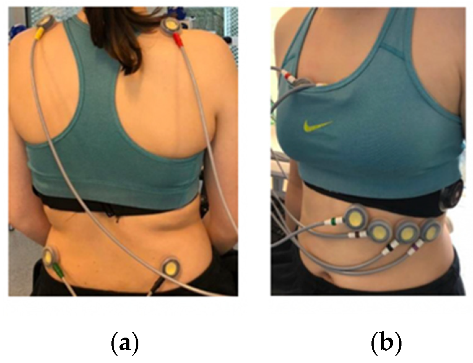 - Nazari, G.; MacDermid, J.C. Reliability of Zephyr BioHarness respiratory rate at rest, during the modified Canadian aerobic fitness test and recovery. J. Strength Cond. Res. 2020, 34, 264–269. [Google Scholar] [CrossRef] [PubMed]