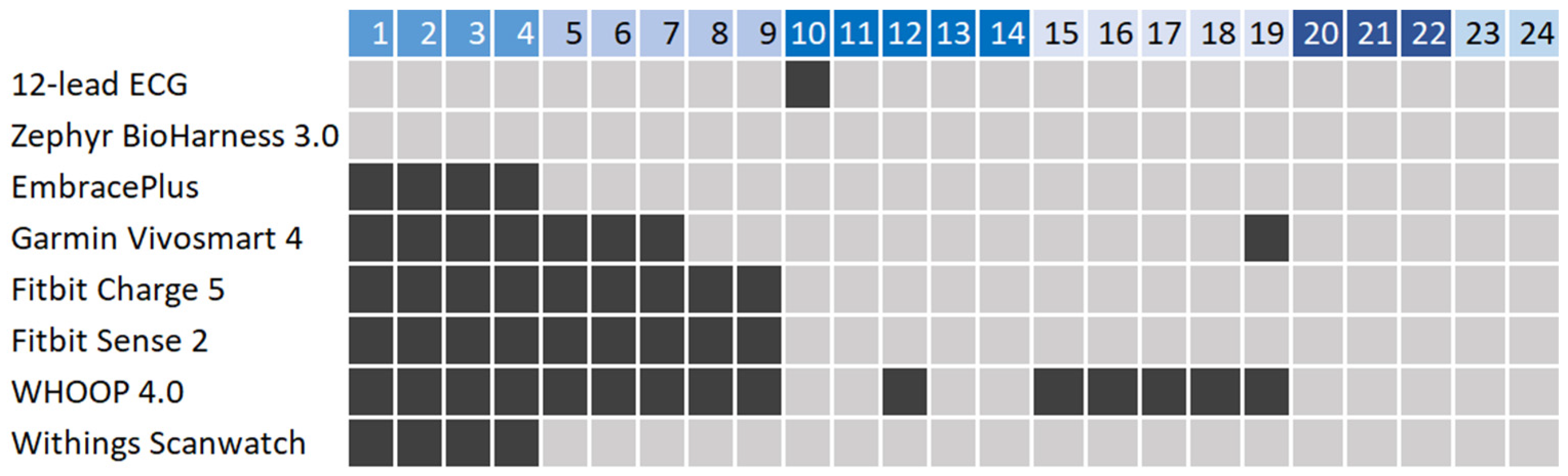 Device | Fitbit CH 5 | Fitbit SE 2 | Garmin Vi 4 | WHOOP 4.0 | Withings SC |