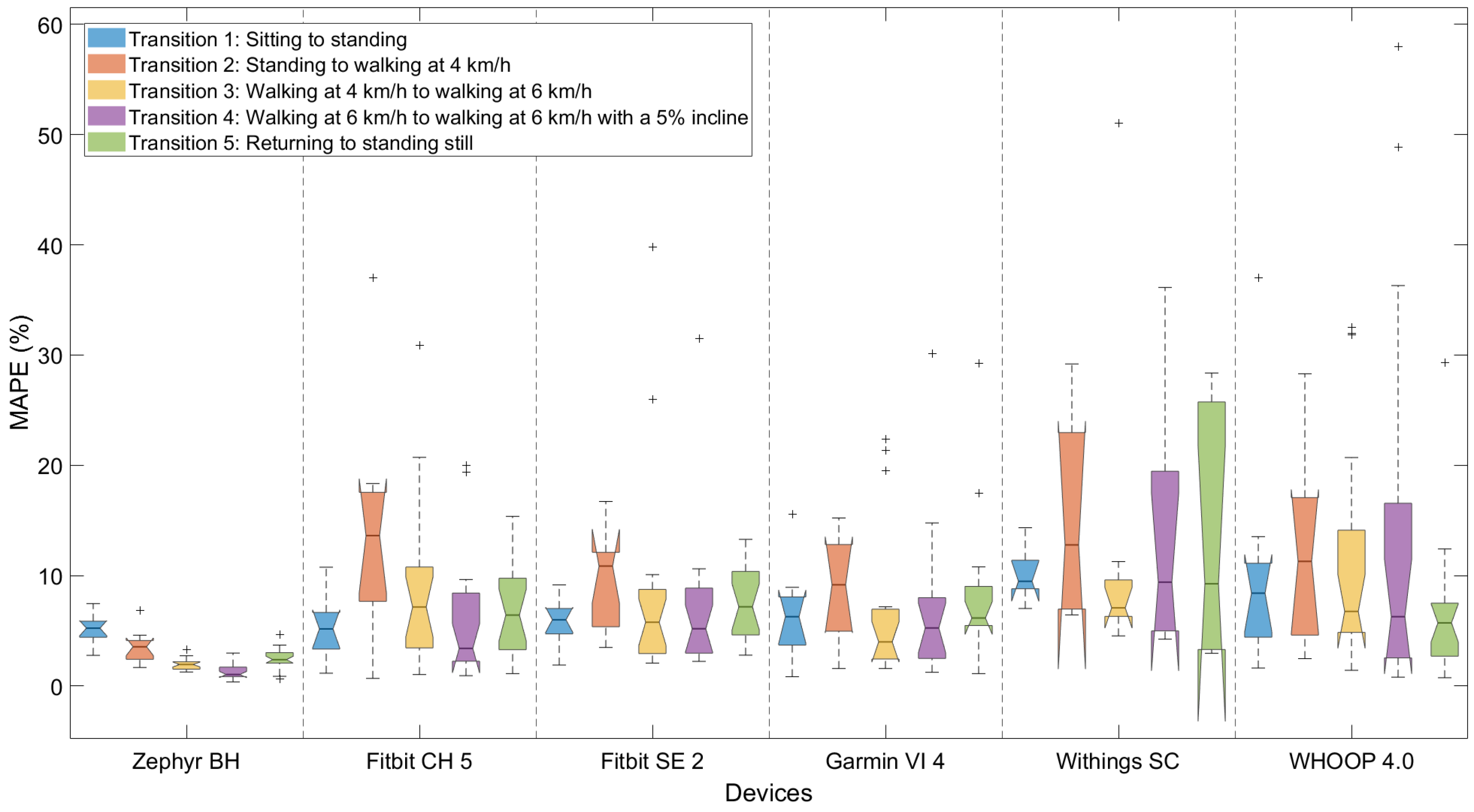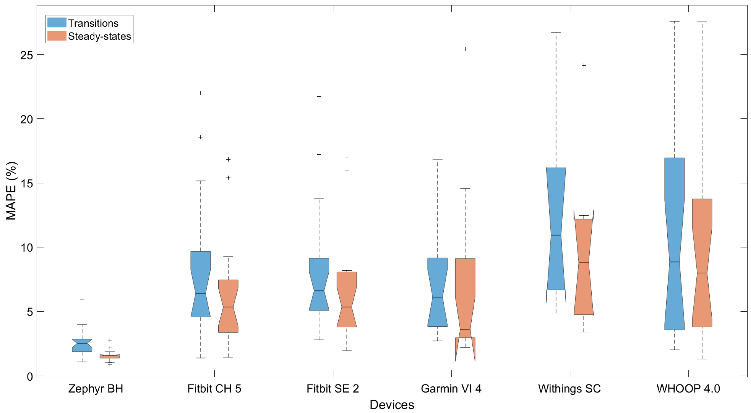Van Oost, C.N.; Masci, F.; Malisse, A.; Schyvens, A.-M.; Peters, B.; Dirix, H.; Ross, V.; Wets, G.; Neven, A.; Verbraecken, J.; et al. Accuracy of Heart Rate Measurement Under Transient States: A Validation Study of Wearables for Real-Life Monitoring. Sensors 2025, 25, 6319. https://doi.org/10.3390/s25206319