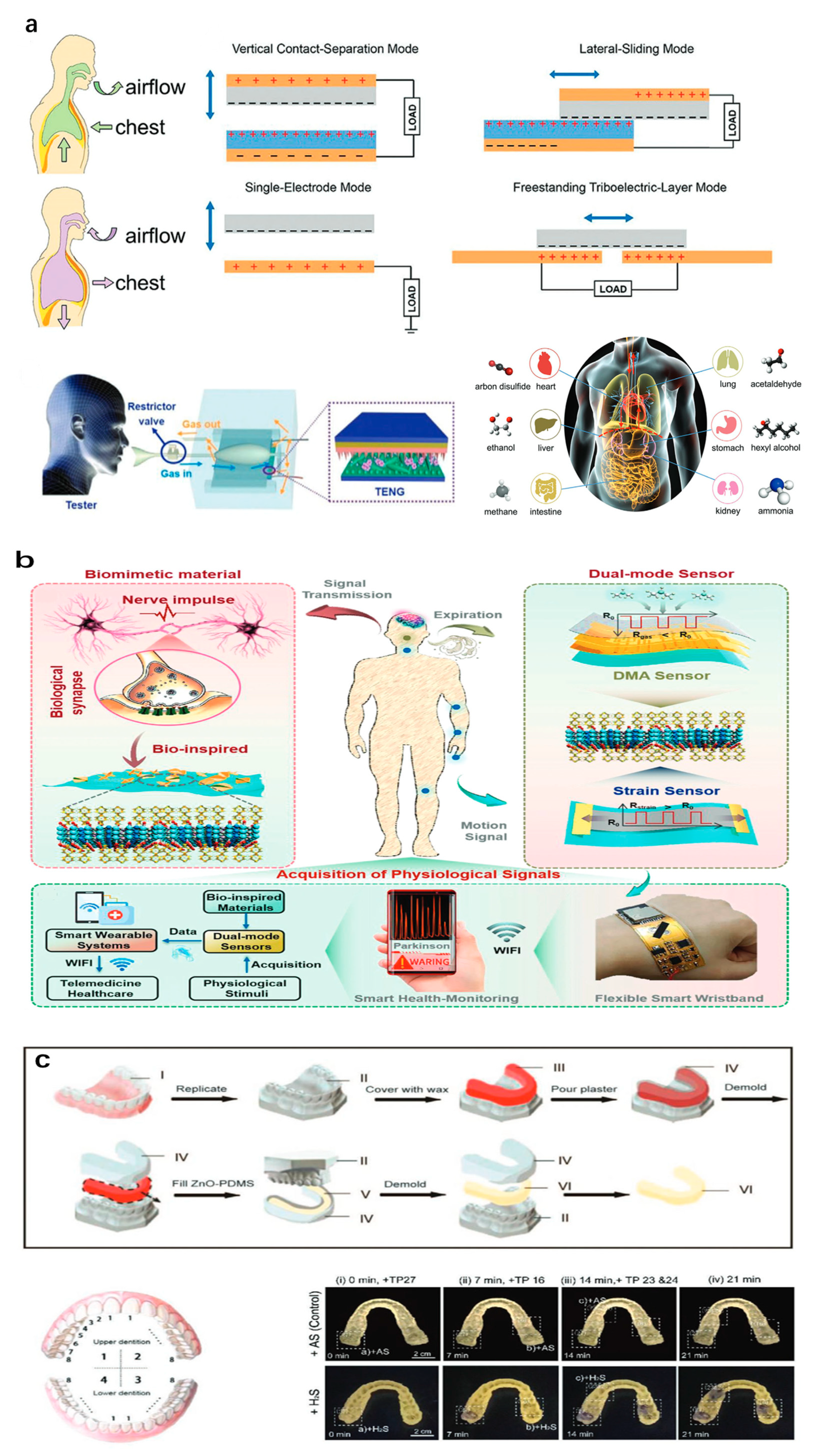 - Su, Y.; Chen, G.; Chen, C.; Gong, Q.; Xie, G.; Yao, M.; Tai, H.; Jiang, Y.; Chen, J. Self-Powered Respiration Monitoring Enabled By a Triboelectric Nanogenerator. Adv. Mater. 2021, 33, 2101262. [Google Scholar] [CrossRef]