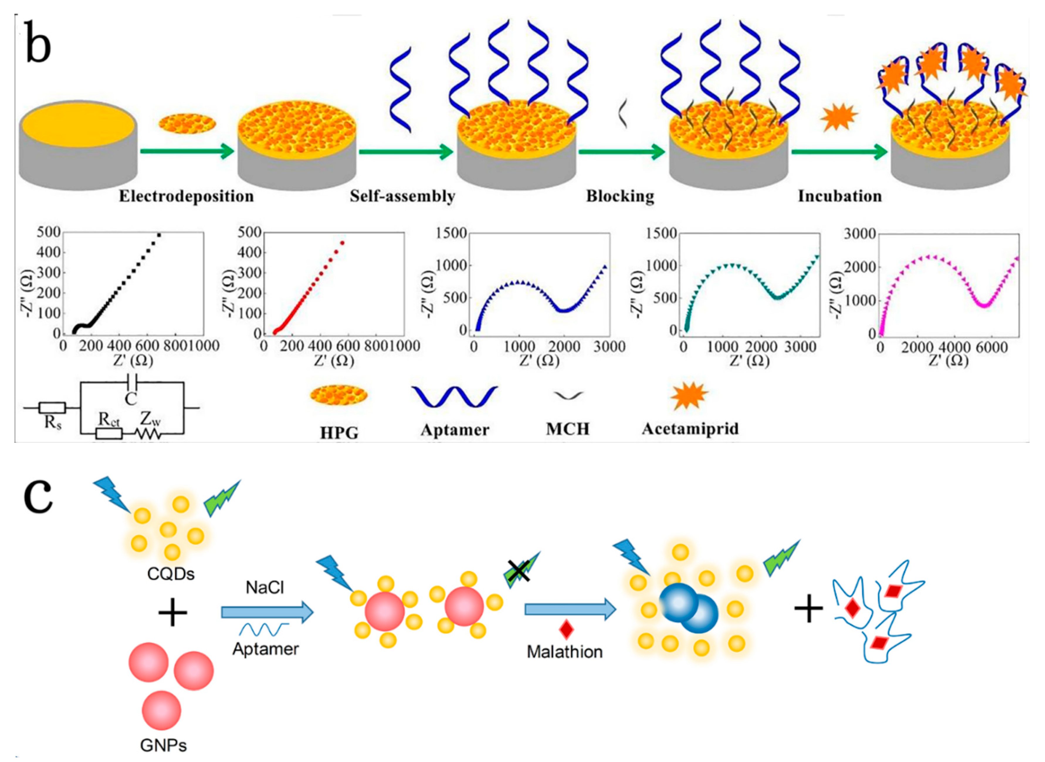 - Xu, Y.; Zhang, W.; Shi, J.; Li, Z.; Huang, X.; Zou, X.; Tan, W.; Zhang, X.; Hu, X.; Wang, X.; et al. Impedimetric Aptasensor Based on Highly Porous Gold for Sensitive Detection of Acetamiprid in Fruits and Vegetables. Food Chem. 2020, 322, 126762. [Google Scholar] [CrossRef]