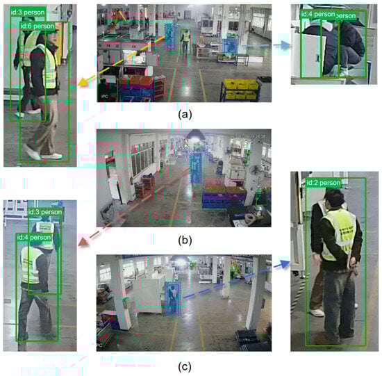 In summary, the evaluation confirms the algorithm’s fundamental capability for personnel tracking in industrial environments. Across the different scenarios, the tracker achieved minimum MOTA and MOTP values of 71.92% and 13.90%, respectively. Furthermore, the integrated detection and tracking pipeline consistently operates at a speed exceeding 56 FPS, satisfying the real-time requirements for practical monitoring applications.