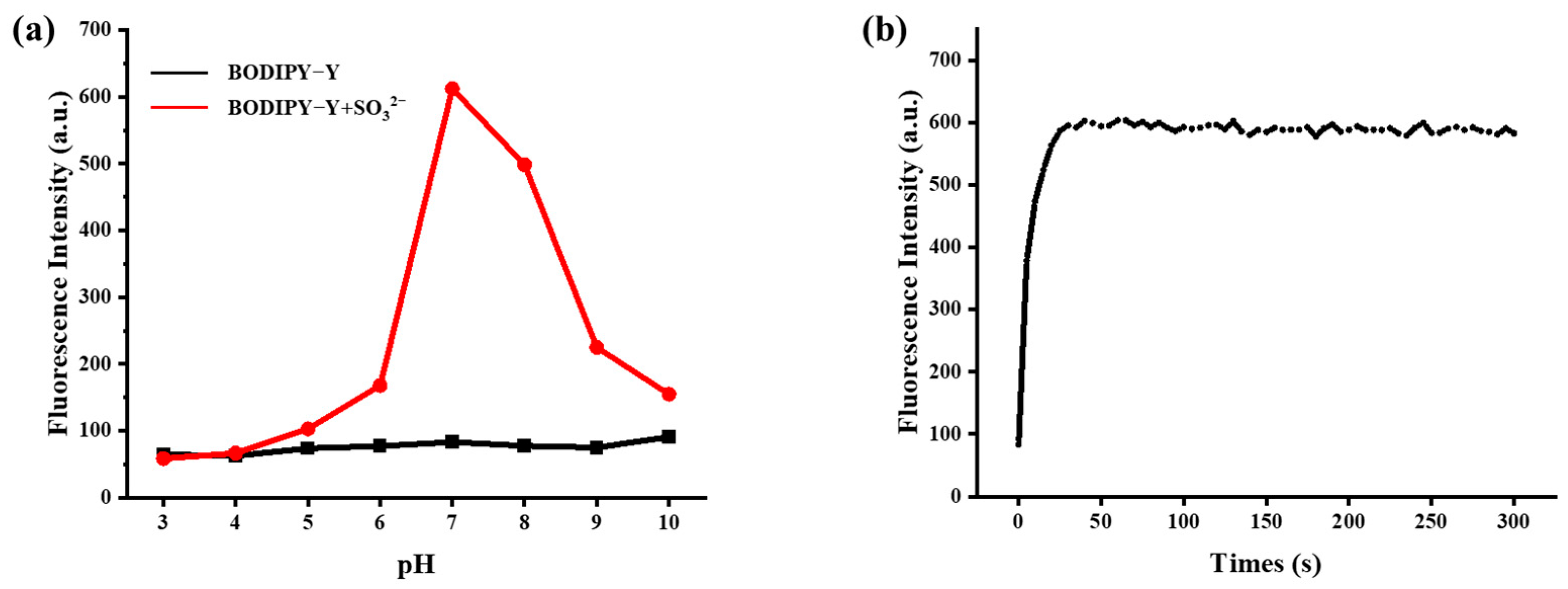 3.4. Stability and Reactivity of Probe BODIPY-Y on SO32−