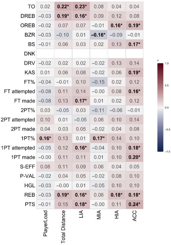 - Li, G.; Shang, L.; Qin, S.; Yu, H. The Impact of Internal and External Loads on Player Performance in Chinese Basketball Association. BMC Sports Sci. Med. Rehabil. 2024, 16, 194. [Google Scholar] [CrossRef]
