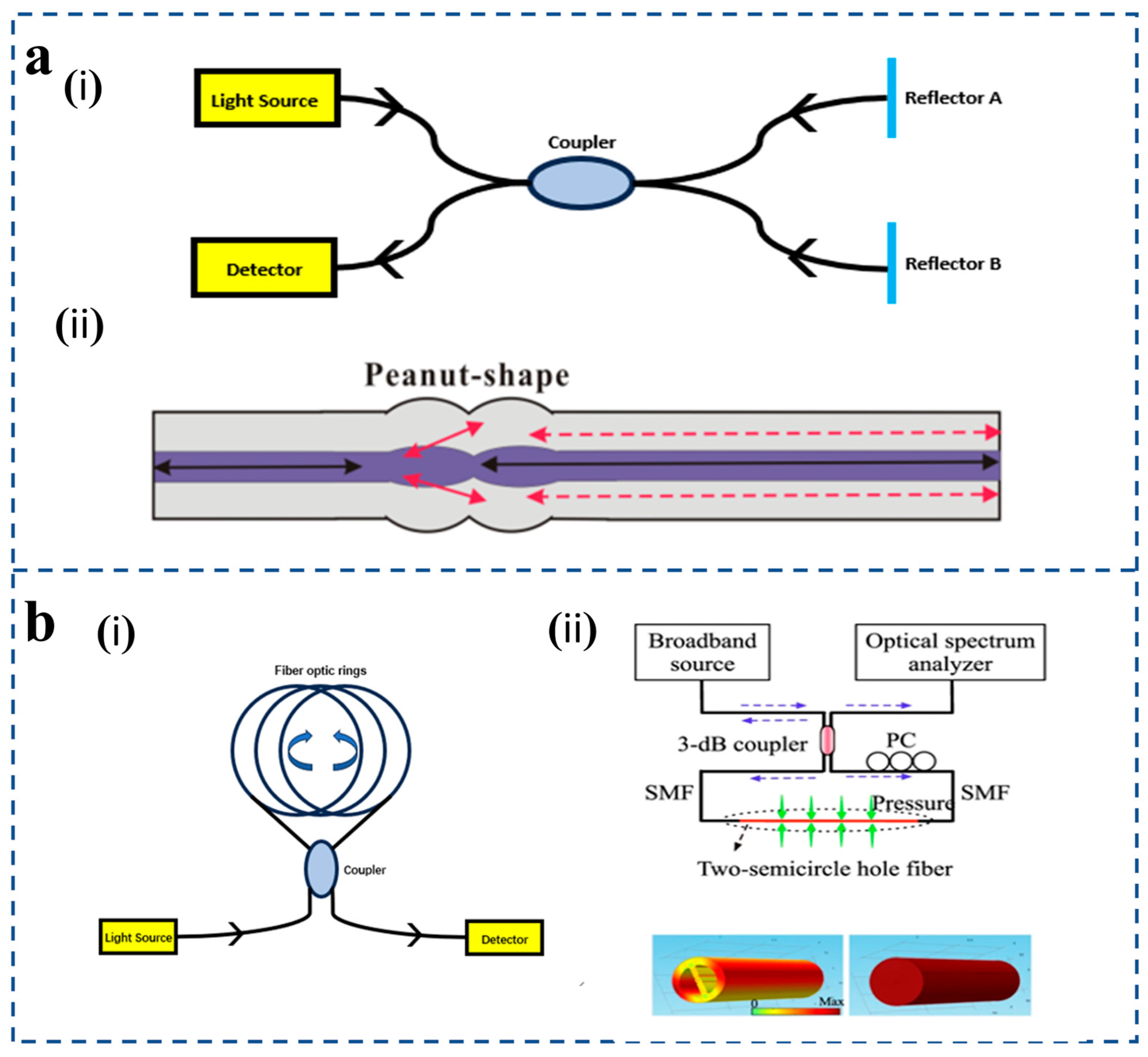 - Liu, Z.; Htein, L.; Lee, K.-K.; Lau, K.-T.; Tam, H.-Y. Large dynamic range pressure sensor based on two semicircle-holes microstructured fiber. Sci. Rep. 2018, 8, 65. [Google Scholar] [CrossRef]