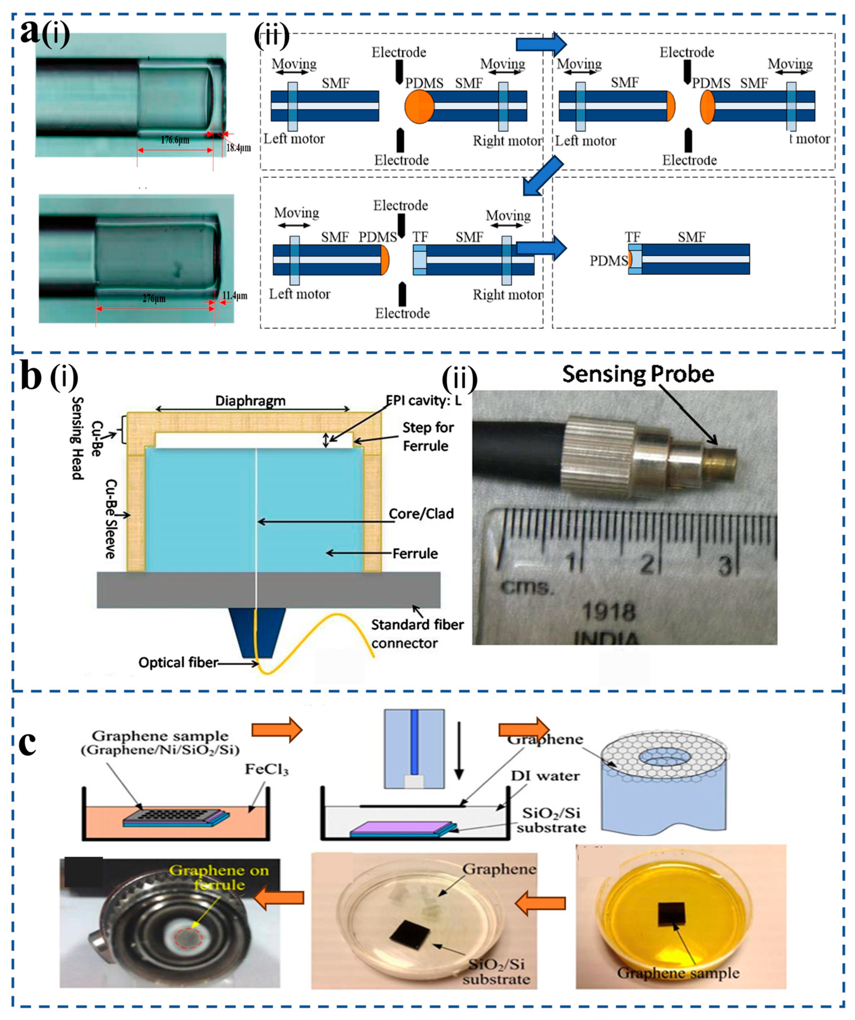 - Luo, C.; Liu, X.; Liu, J.; Shen, J.; Li, H.; Zhang, S.; Hu, J.; Zhang, Q.; Wang, G.; Huang, M. An optimized PDMS thin film immersed Fabry-Perot fiber optic pressure sensor for sensitivity enhancement. Coatings 2019, 9, 290. [Google Scholar] [CrossRef]
