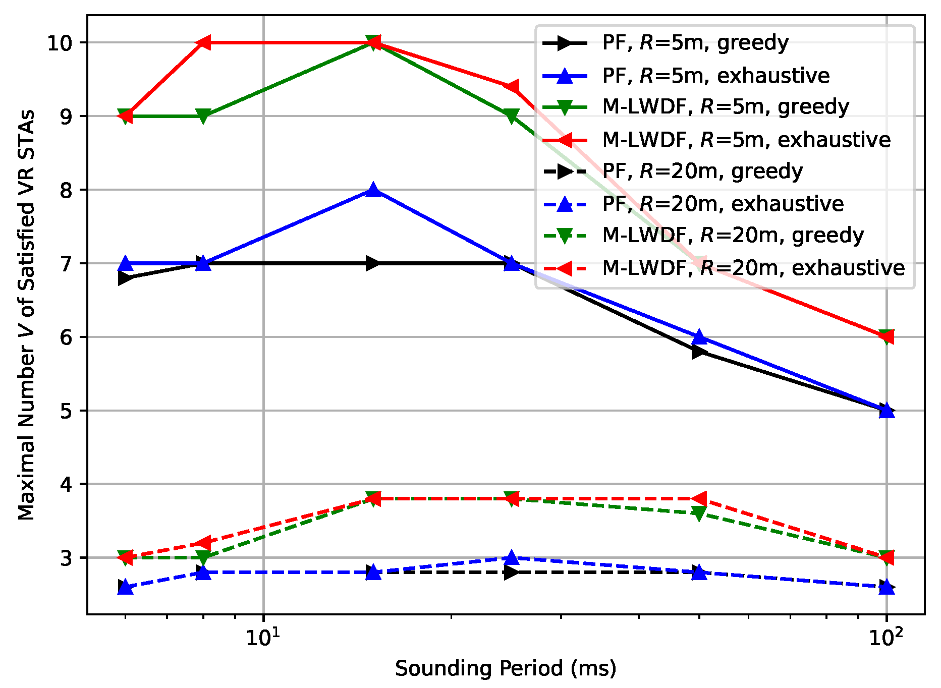 - Choi, J.; Choi, S.; Lee, K.B. Sounding node set and sounding interval determination for IEEE 802.11 ac MU-MIMO. IEEE Trans. Veh. Technol. 2016, 65, 10069–10074. [Google Scholar] [CrossRef]