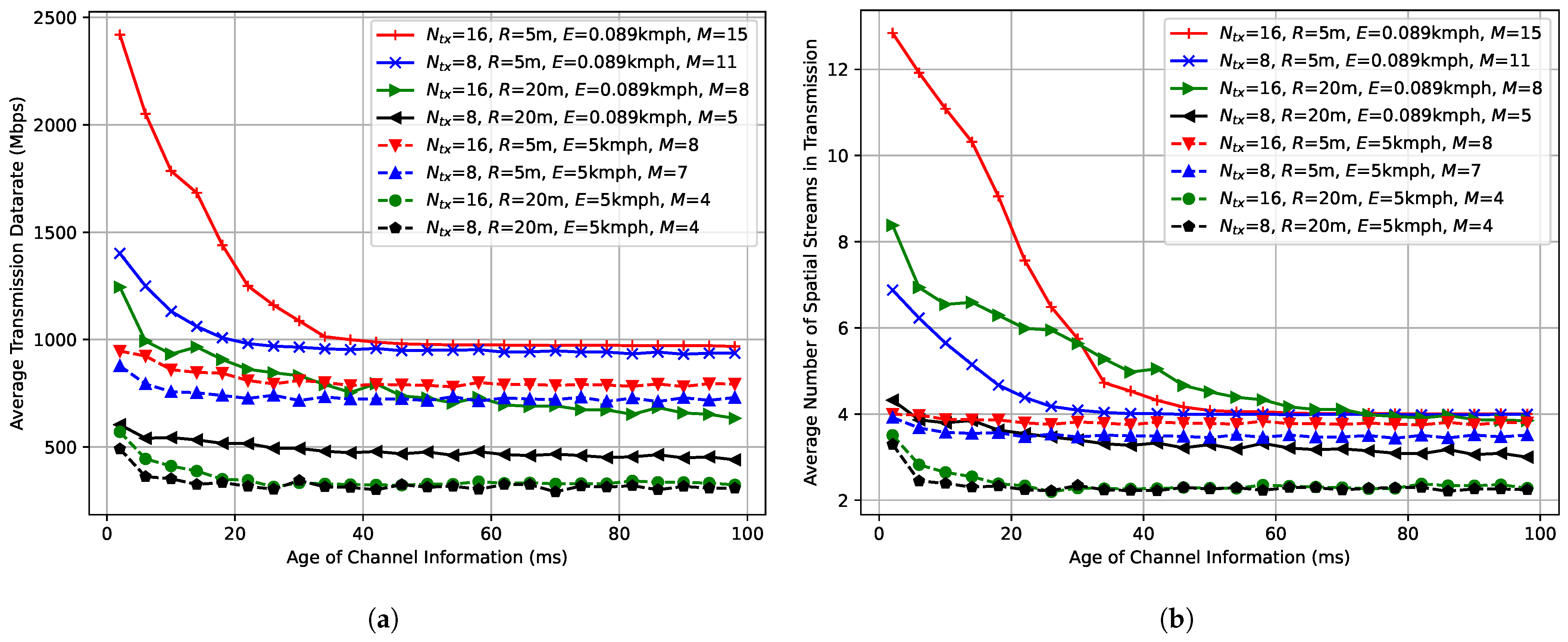 - Su, S.; Tan, W.T.; Zhu, X.; Liston, R.; Wildfeuer, H.; Aazhang, B. Motion-Aware Optimizations for Downlink MU-MIMO in 802.11 ax Networks. IEEE Trans. Netw. Serv. Manag. 2021, 18, 4088–4102. [Google Scholar] [CrossRef]