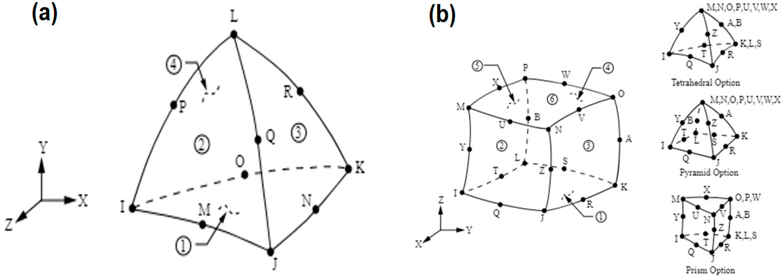 Table 8 shows the percentage comparison of the displacements for meshes 1, 2, and 3. The percentage difference between meshes 2 and 3 is quite small (0.59%). Therefore, the conclusion is that mesh 2 can be considered the standard mesh for further studies as it displays a tendency towards stability in the displacements.