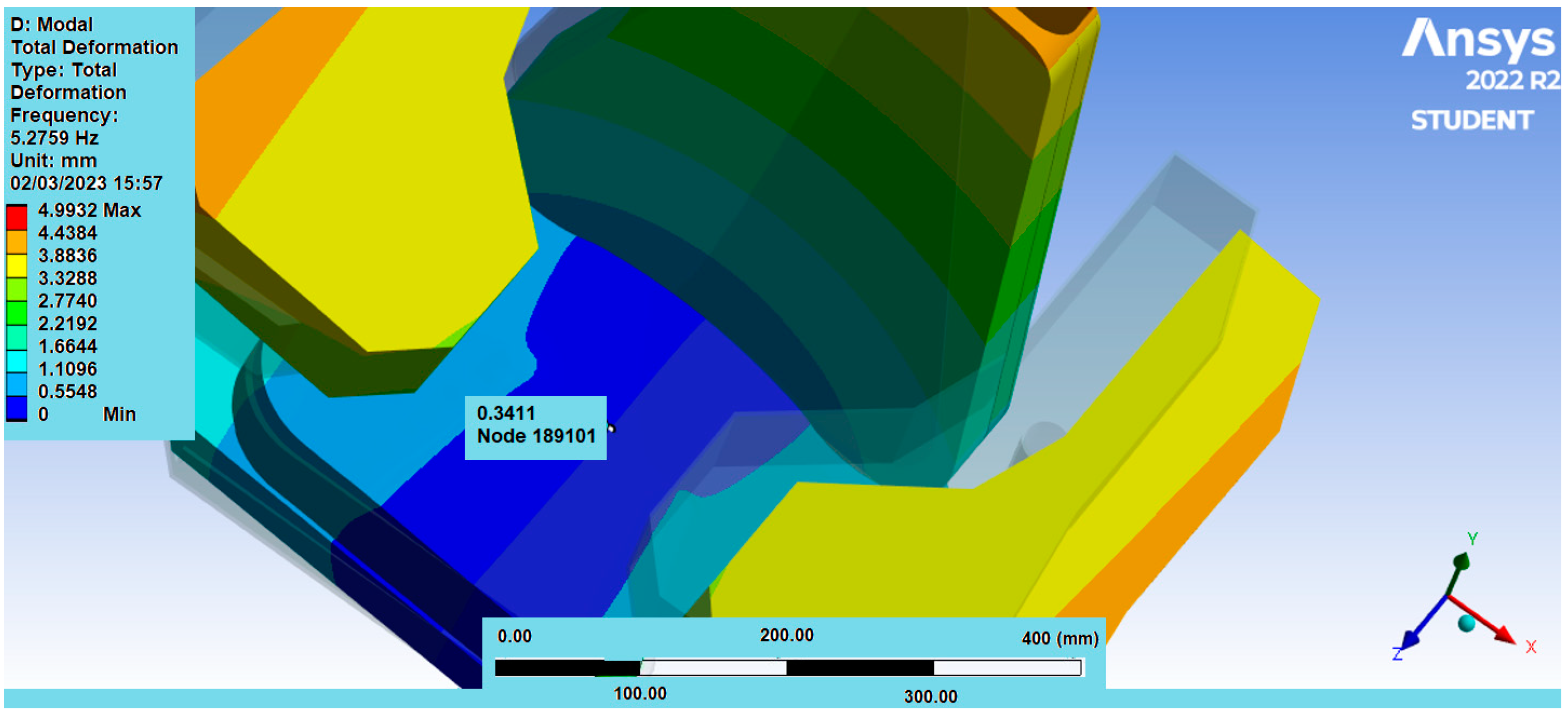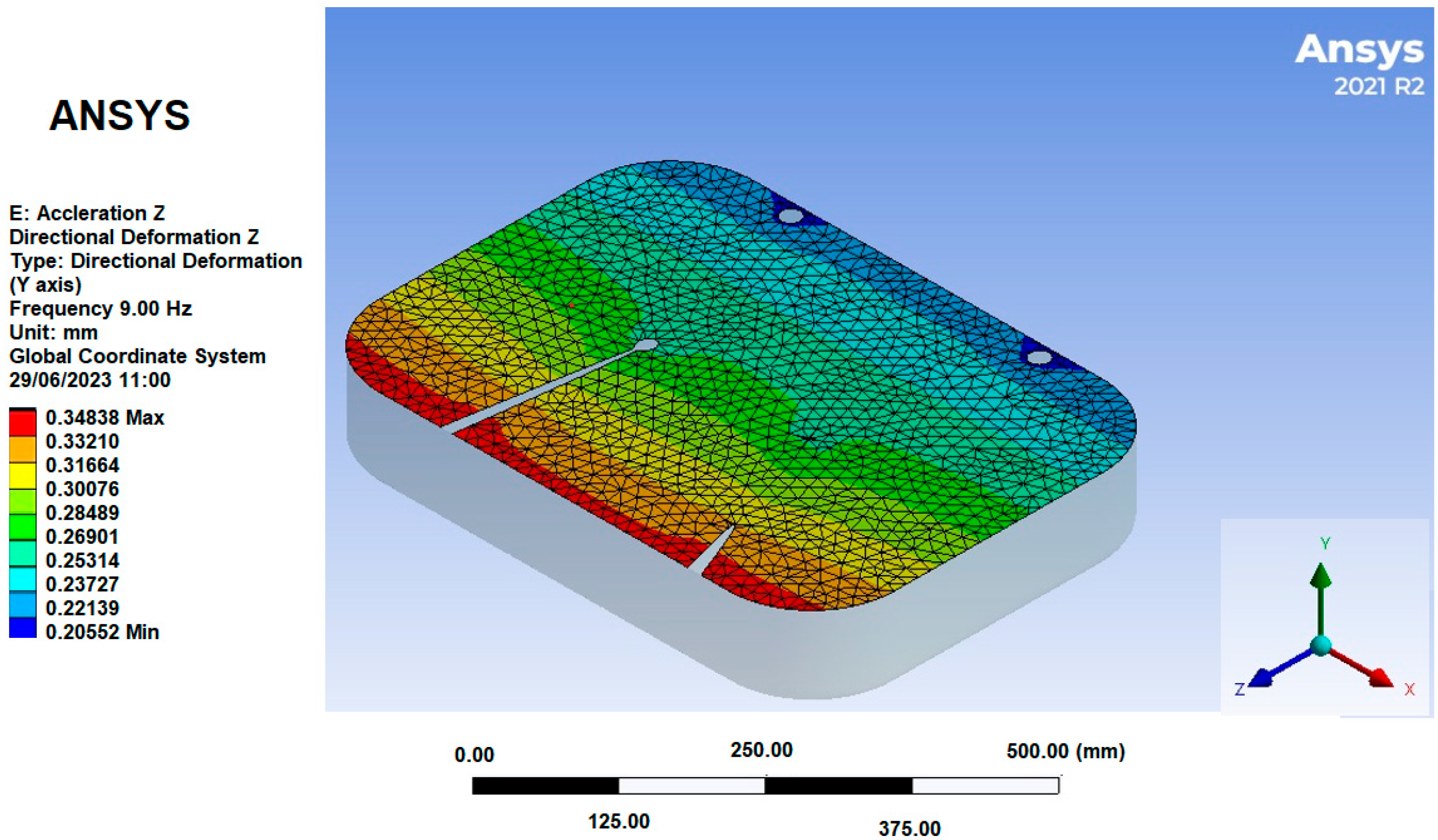 Table 11 shows the deformation and acceleration results of the model considering a frequency range of 0 to 10 Hz.