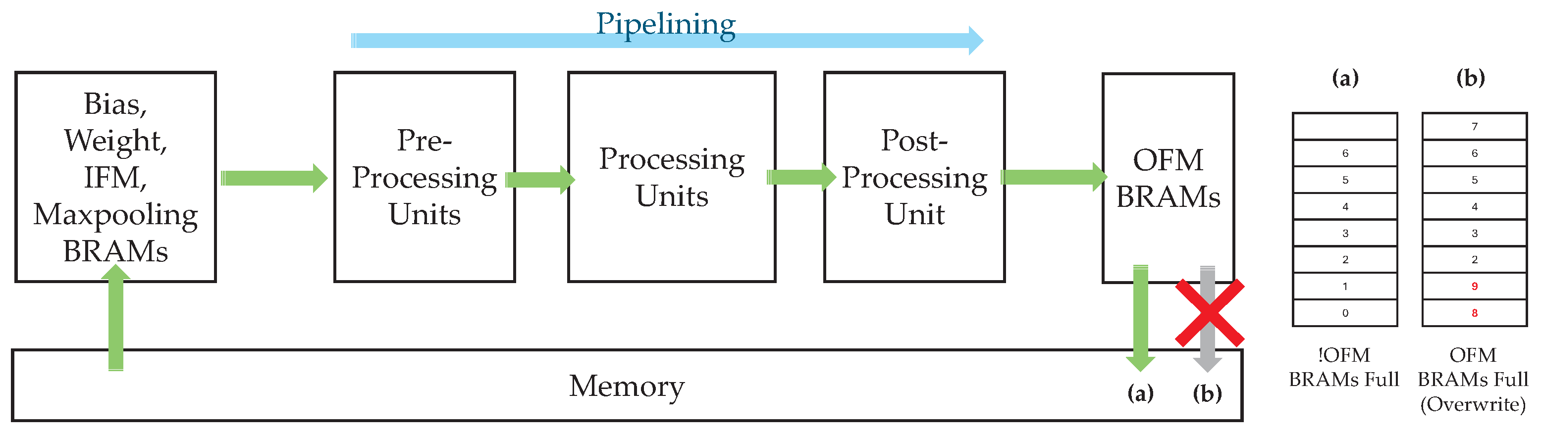 - Herrmann, V.; Knapheide, J.; Steinert, F.; Stabernack, B. A YOLOv3-Tiny FPGA Architecture Using a Reconfigurable Hardware Accelerator for Real-Time Region of Interest Detection. In Proceedings of the Euromicro Conference on Digital System Design, Maspalomas, Spain, 7–9 September 2022; pp. 453–460. [Google Scholar]