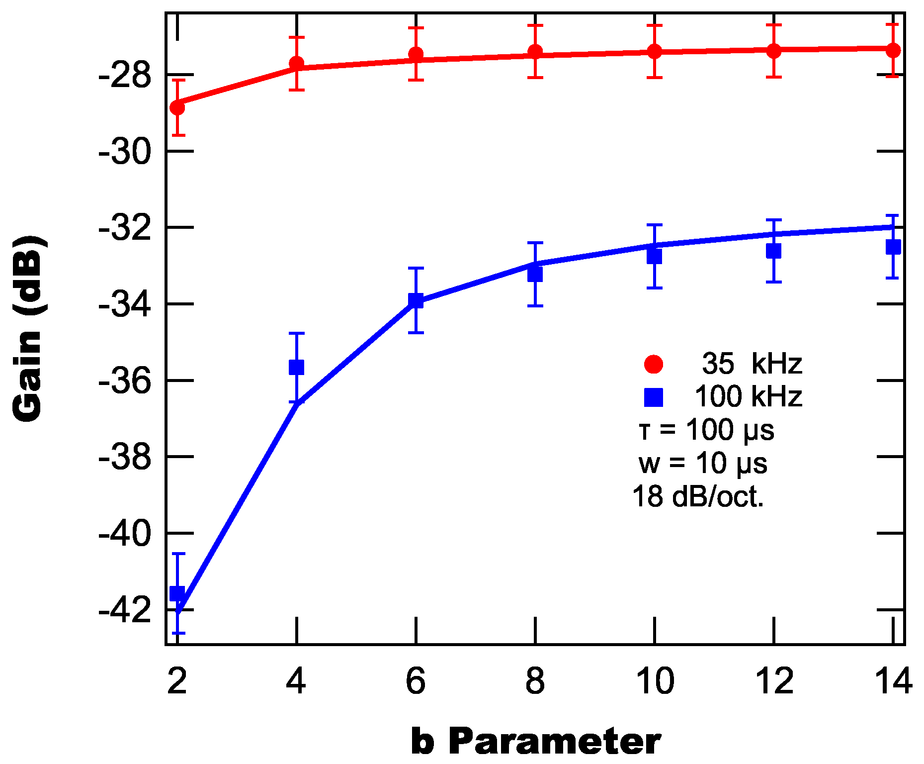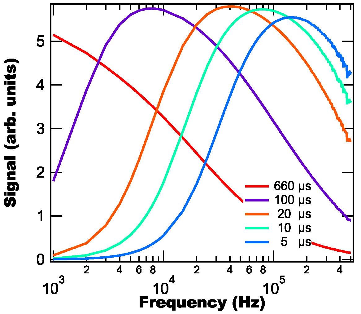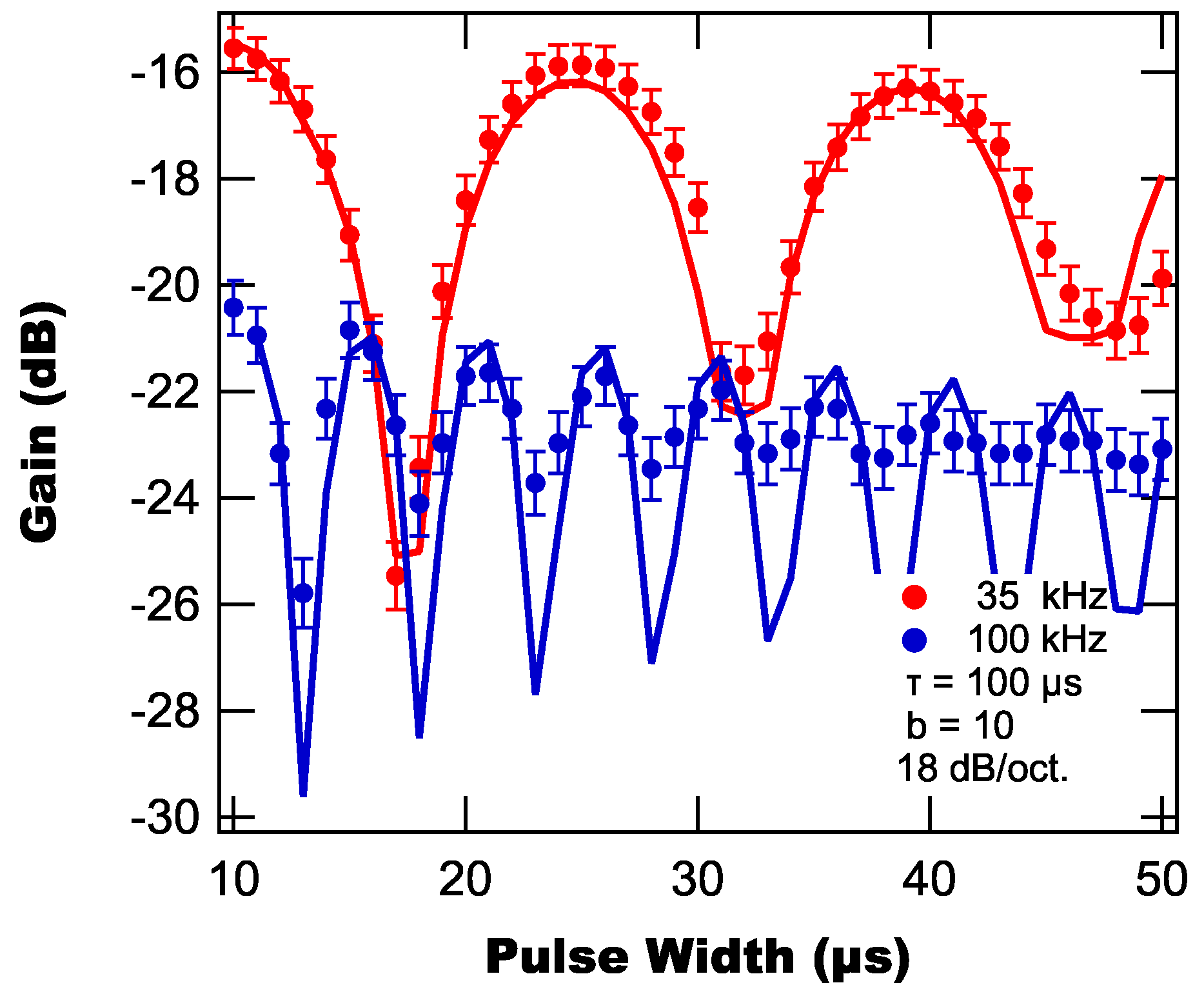 Time Constant | • Increases with time constant, but eventually reaches a point of diminishing returns. | • Rise time is linear in time constant, with the slope dependent on the roll-off. • Correct peak temperature is obtained as long as the pulse width is 10× greater than the time constant. • For shorter pulses the peak temperature decays exponentially with time constant. • Correlation coefficient between actual pulse and reproduced pulse decreases with time constant. |