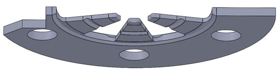 Several geometries for the design of the spring plate were analyzed, as shown in Figure 2. The design goal of these versions is to ensure contact between the crystal and the cover in any configuration, despite the unavoidable dimensional tolerances of the components. The contact must remain sufficiently compliant to prevent excessive stress concentrations in the crystal caused by contact forces. Thus, the idea was to introduce a compliant plate with moderate stiffness to avoid stress-related issues. The cuts present in the proposed designs serve to reduce the bending stiffness of the plate.