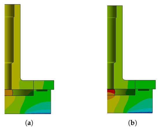 Temperature distribution of two configurations without the spring plate: (a) contact; (b) non-contact.