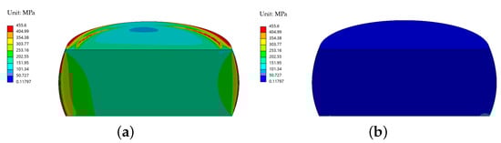 Stress distribution of the preliminary design with a 1 mW laser power: (a) case with contact and (b) case without contact.