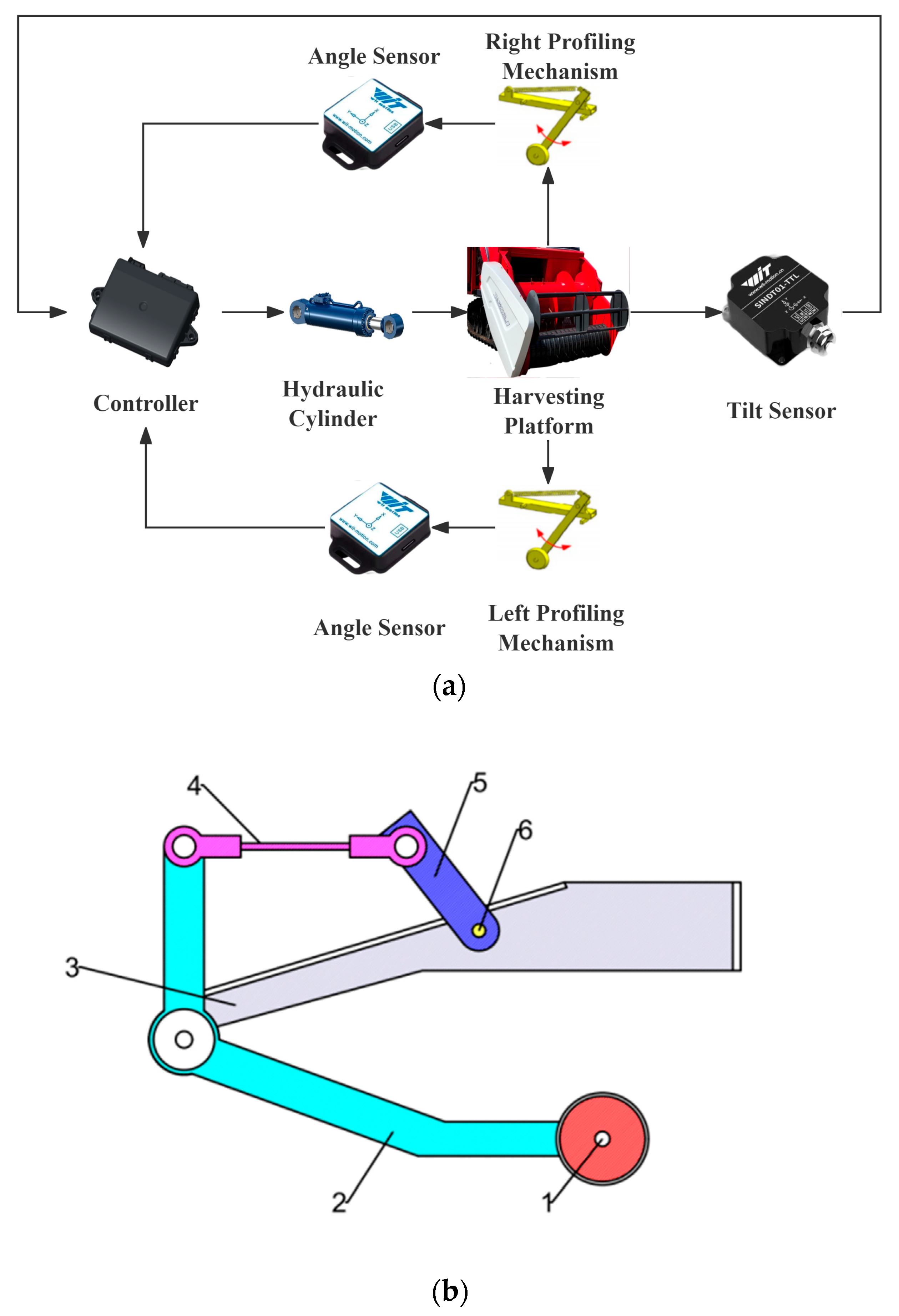 - Huang, Y.; Fu, L.; Zhou, T.; Zhou, Z.; Ren, Z. Design and Testing of the Longitudinal Height and Lateral Tilt Synergistic Profiling System for the Header of a Combine Harvester. China Mech. Eng. 2025, 41, 1119–1123. [Google Scholar]