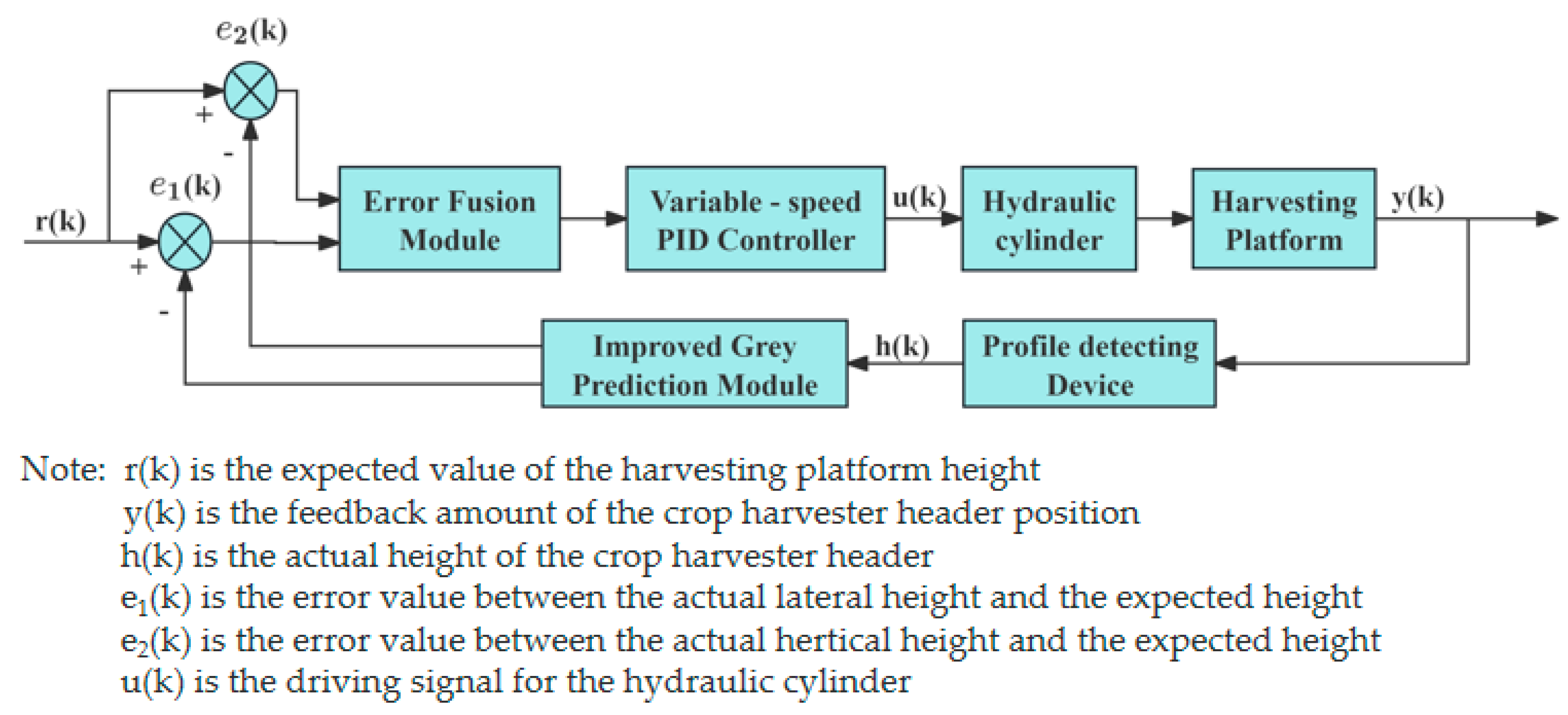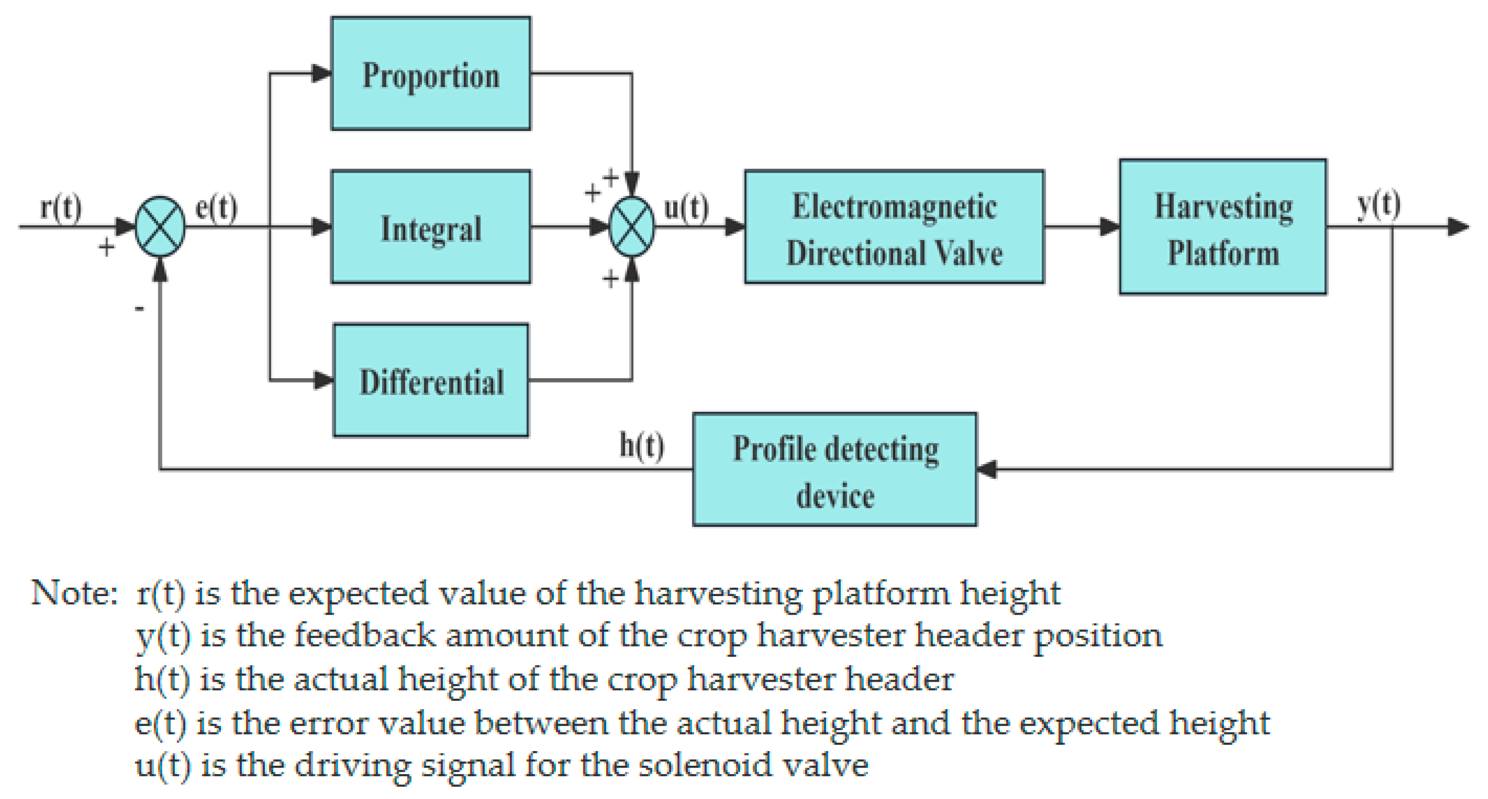- Wang, Z.; Yang, R.; Chen, D.; Wang, J.; Li, X. Design of Header Profiling Height Control System Based on PID Regulation. J. Agric. Mech. Res. 2024, 46, 97–102. [Google Scholar]