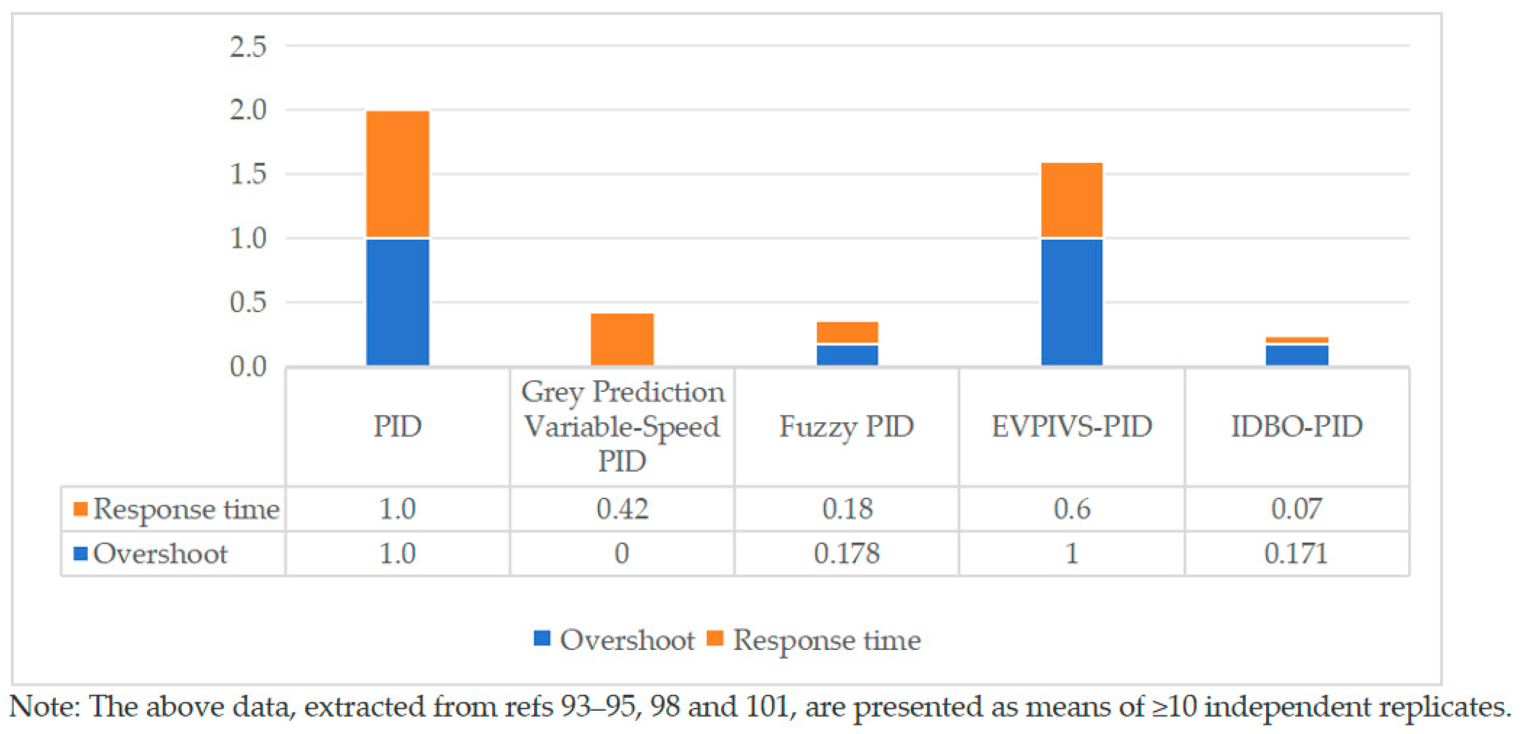 Fuzzy PID | 1.68 | 6.75 | Nonlinear systems with certain requirements for response speed | [98] |