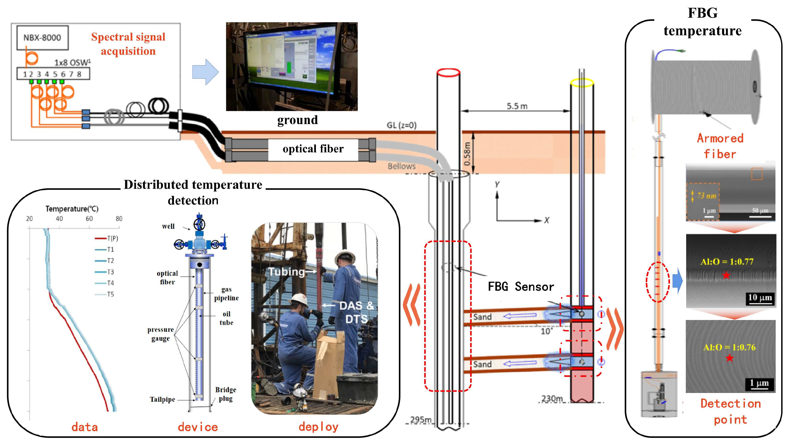 - Wang, Y.Y.; Zhang, F.X.; Zhao, Q.C.; Che, C.R. Real-time monitoring of pressure and temperature of oil well using a carbon-coated and bellow-packaged optical fiber sensor. Opt. Fiber Technol. 2021, 67, 102703. [Google Scholar] [CrossRef]
