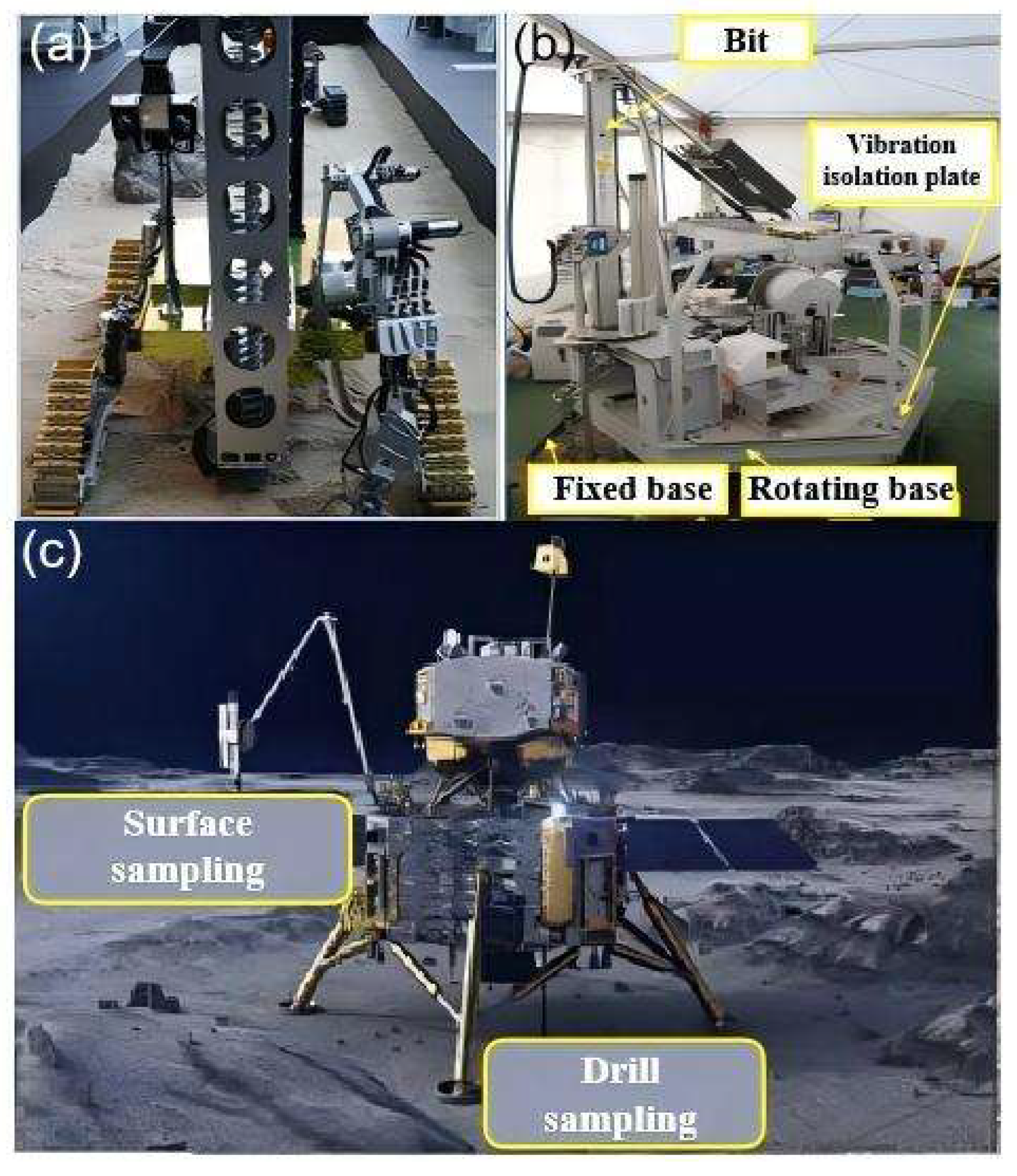 - Zhang, T.; Wang, B.; Wei, H.; Zhang, Y.; Chao, C.; Xu, K.; Ding, X.; Hou, X.; Zhao, Z. Review on planetary regolith-sampling technology. Prog. Aerosp. Sci. 2021, 127, 100760. [Google Scholar] [CrossRef]