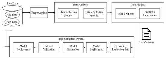 Workflow of dynamic data versioning for recommender systems using feature selection and data reduction.
