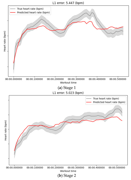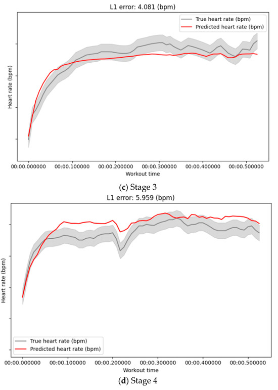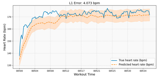 Baseline Heart Rate Prediction on the Full Dataset. This plot illustrates the performance of a model trained on the entire dataset, without the proposed DDM strategy. It serves as the baseline for evaluating the predictive accuracy of the stage-wise DDM approach presented in Figure 9.