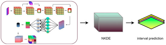 The interval prediction model inherits the high accuracy of the STiCDRS model in single-point prediction, which makes it possible to obtain a more reliable interval prediction range and probability density function (PDF) when constructing the NKDE model between the point prediction value and the observation value, thus obtaining the final STiCDRS-NKDE model, as shown in Figure 7.