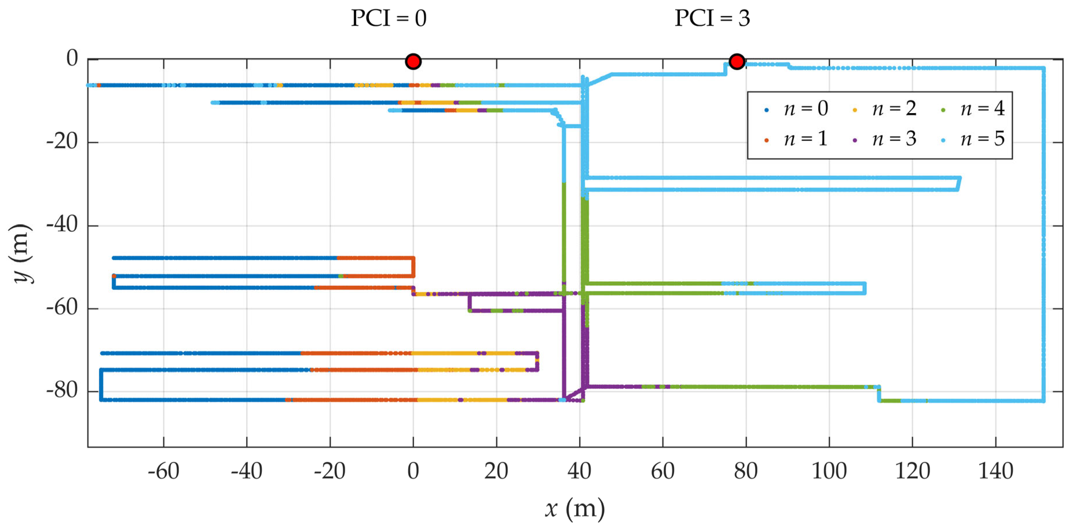 7]. In contrast, the measurements in the present study were collected in a live industrial environment, using signals transmitted by commercial 5G network infrastructure. The only deviation from a fully typical usage scenario was the use of a 5G scanner on the UE side for measurement collection.