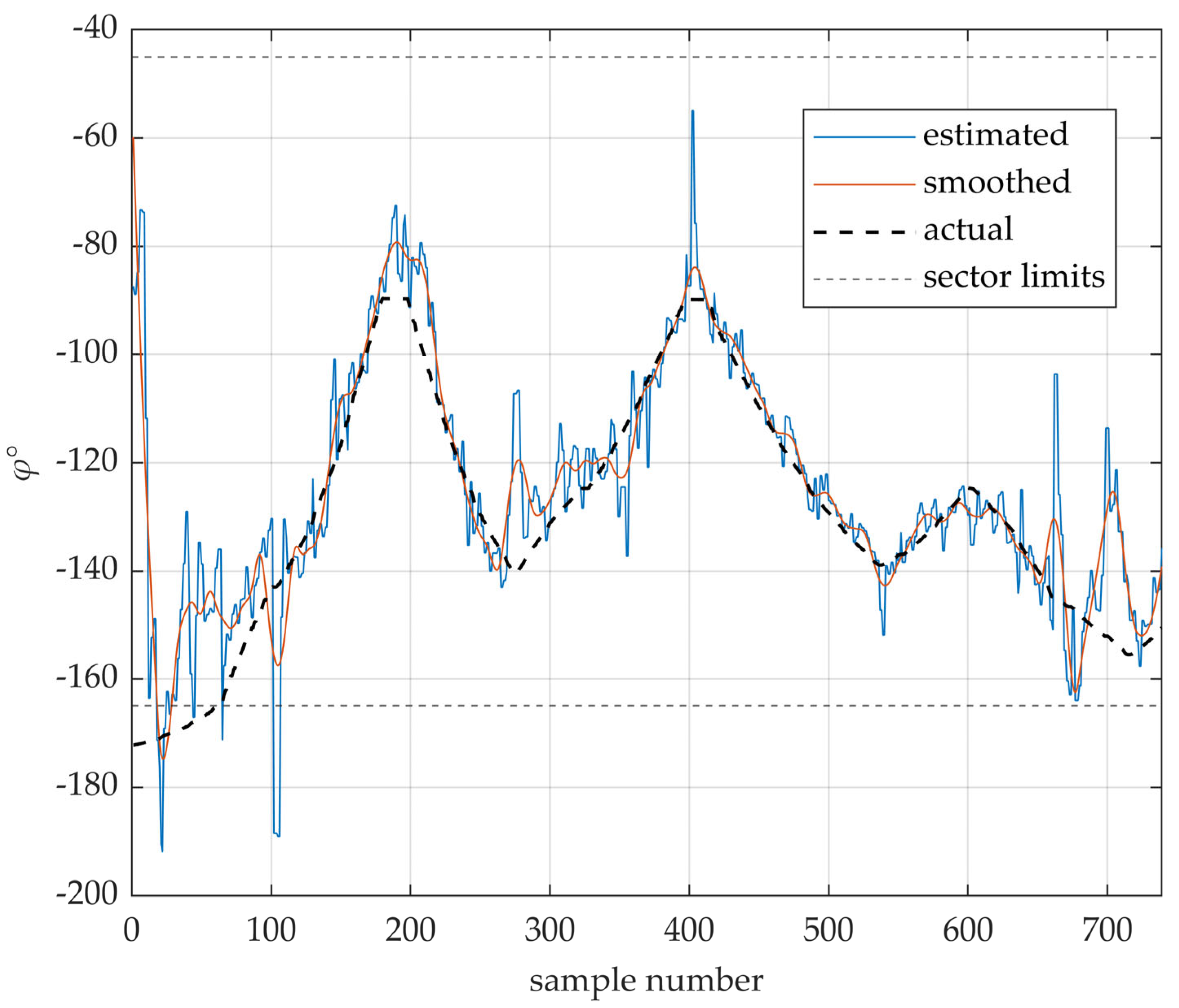 Figure 3—the data were filtered to retain only those measurements that fell within the angular span between the first and last beams of the relevant sector, in accordance with the assumptions of the proposed method. Due to the use of Bayesian regularization, the validation dataset was not needed. For testing purposes a separate dataset, collected over the test trajectory, was used.