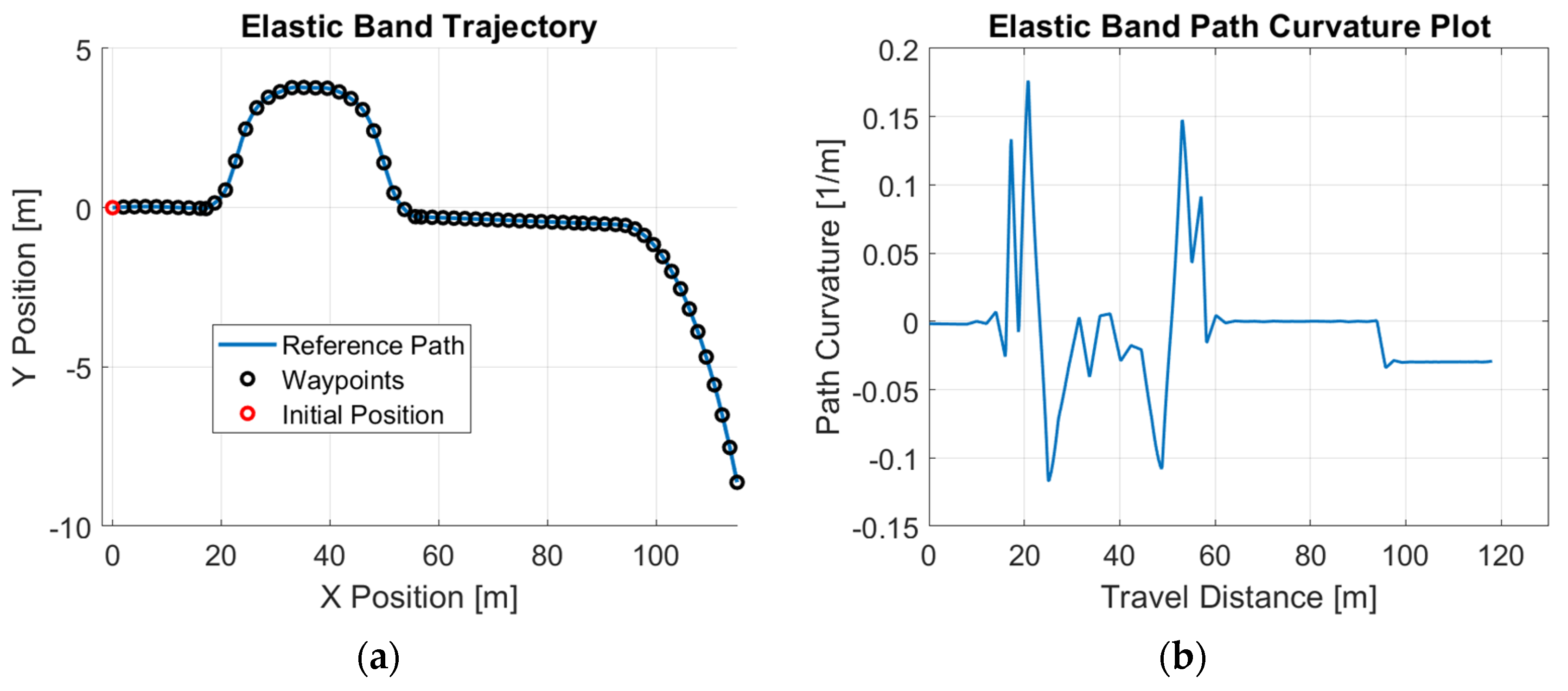 29], to generate a collision-free trajectory. This trajectory was then used as a reference path for the path-tracking controller, allowing us to evaluate its ability to accurately follow dynamically adjusted paths.