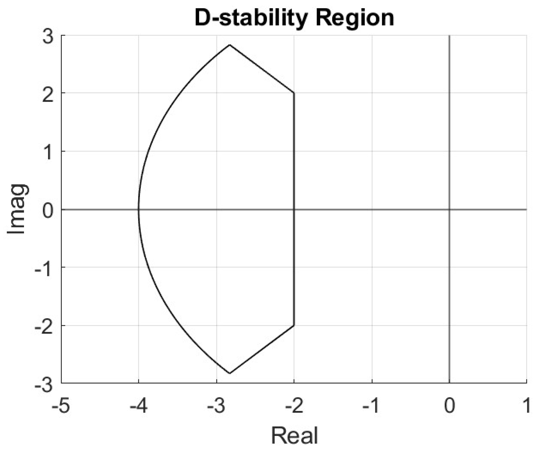Figure 10, is established for desired pole placement of the closed-loop system. The D-stability region boundaries are chosen to satisfy desired maximum settling time, percent overshoot and natural frequency bounds for a dominantly second-order system.