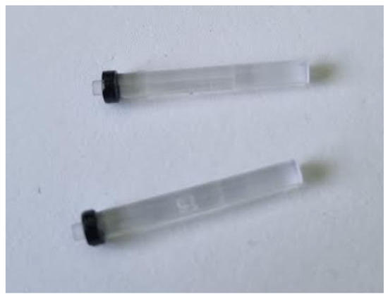 The third tested component was fiber optic tubes used in the automotive industry for button backlighting. The provided set of parts included both defective and properly manufactured tubes. The tubes are made of two components, a fiber optic core and a black collar that directs light beams toward the desired illuminated area. A preview image of the tubes is shown in Figure 13.