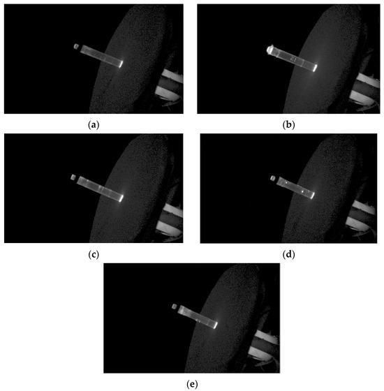 As shown in Figure 16, for a properly made fiber optic tube, the camera detected only two light spots—one at the beginning and one at the end of the tube. In the absence of the collar, the exit spot is much larger and scatters the light. If the tube is not sufficiently filled, a light spectrum and blurring appear inside it. Internal air bubbles are visible as separate bright points (dots). A short shot appears as a blurred haze.