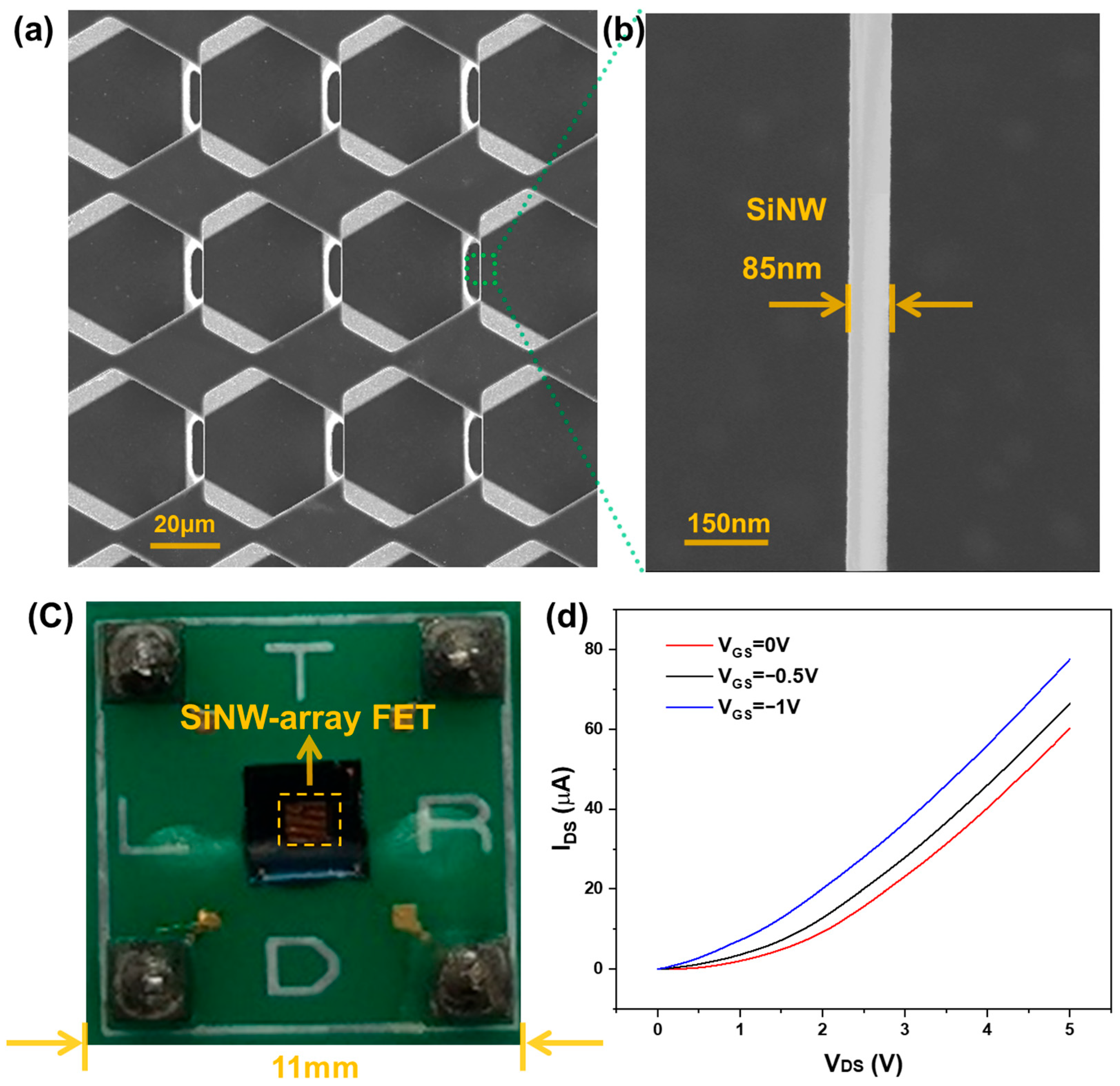 3.1. Morphology Characterization and Electrical Properties of SiNW-Array FET