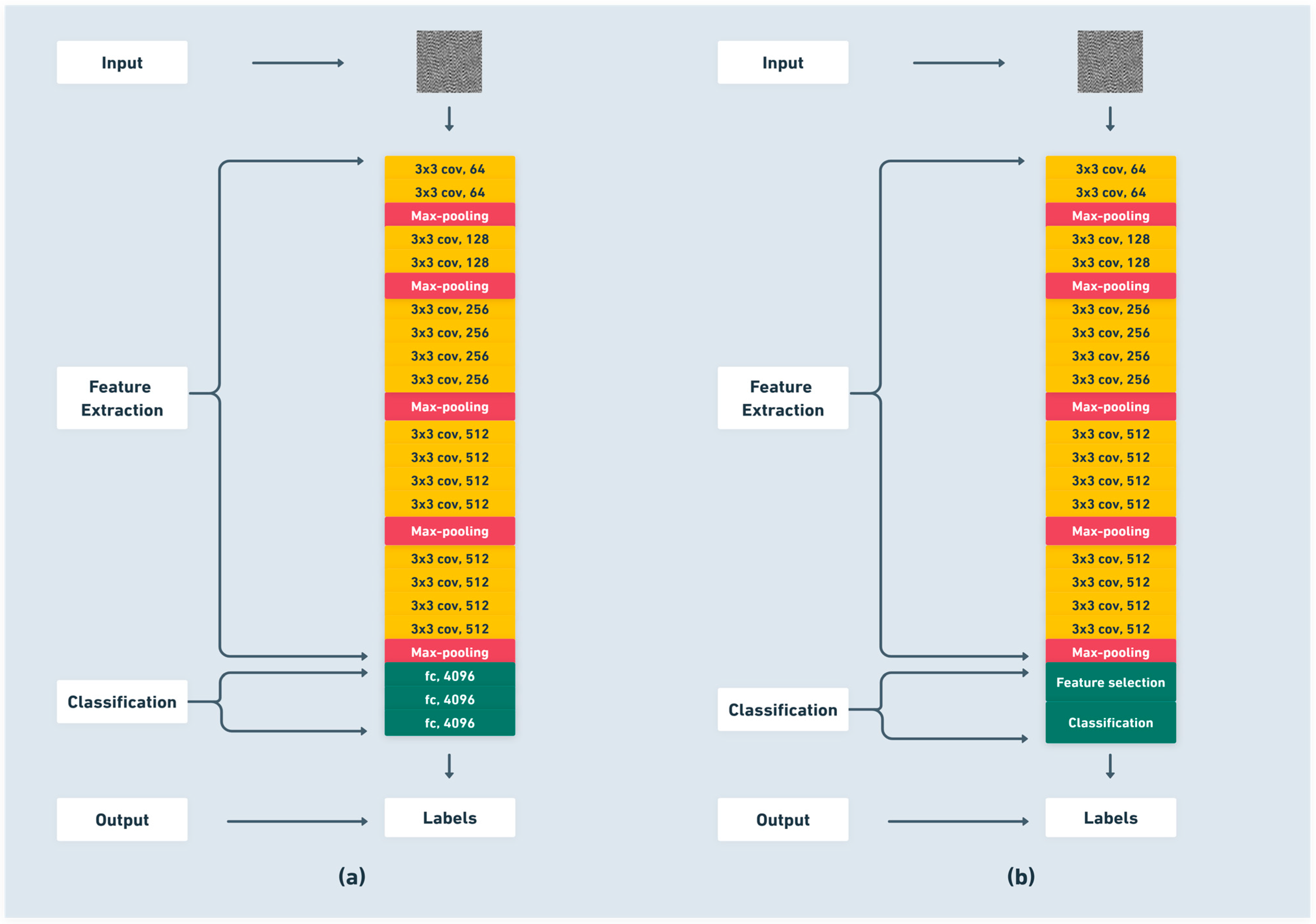 VGG19, considered one of the most frequently used paradigms in image classification, is a deep learning architecture designed on a convolutional neural network, with nineteen layers, sixteen of which are convolutional, while the remaining three are fully connected layers. Its design stands on 3 by 3 filters that allow the model to catch the most relevant details. VGG19 uses the ImageNet dataset. This model is designed to classify images into one of a thousand distinct object categories [