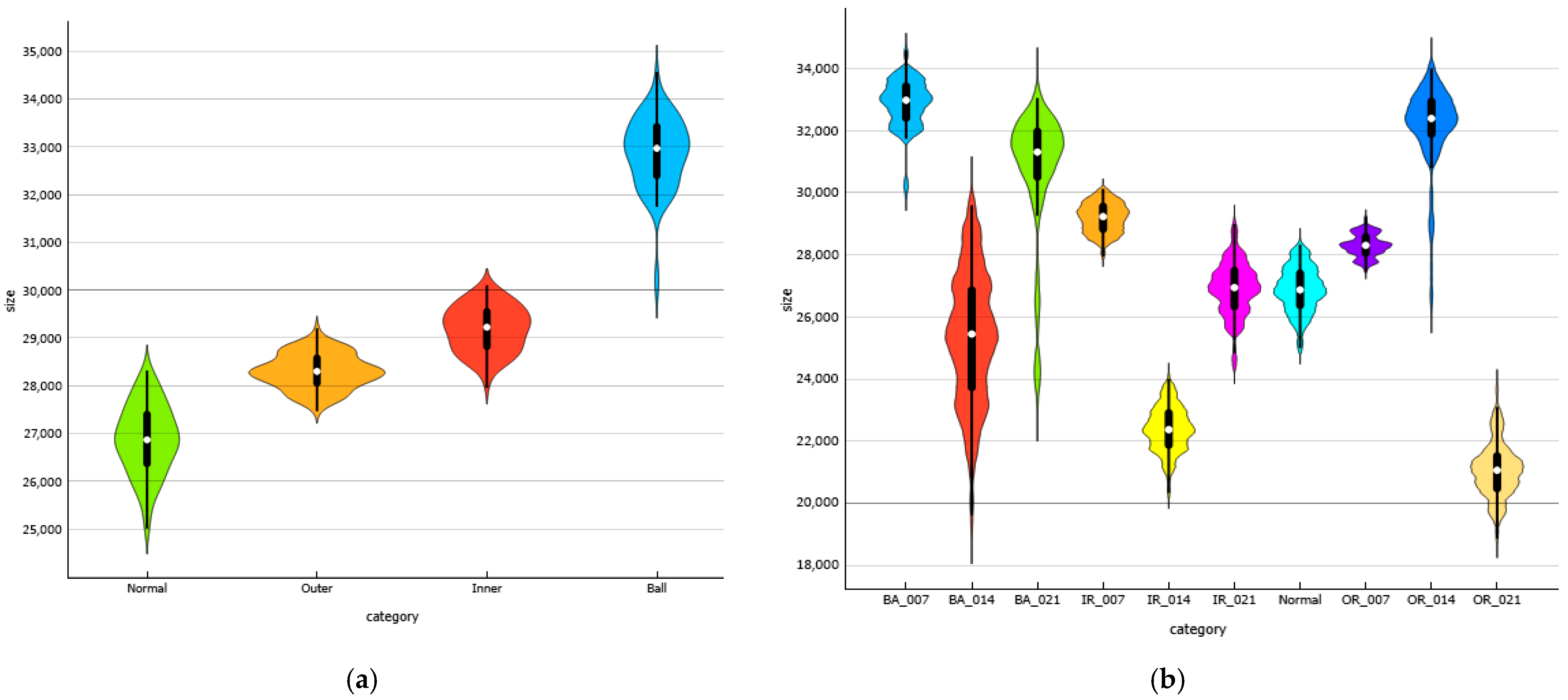 Table 3 describes the ten different faulted bearing classes used within this experimental dataset. In this experiment, we construct two datasets, each one containing different classes of rolling bearing faults. Dataset A has four classes corresponding to the first four labels of