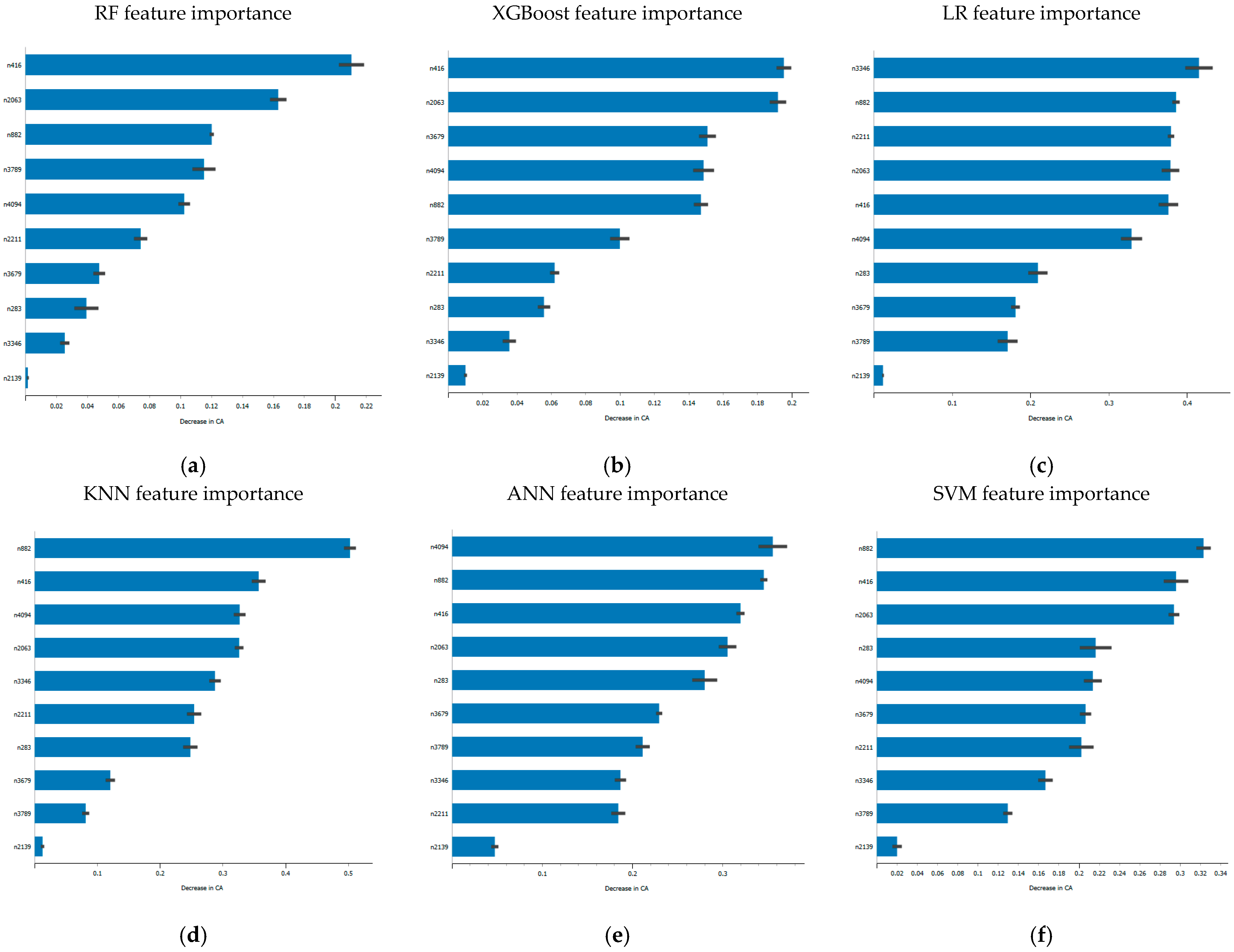 45]. The greater the degradation in performance, the more important the feature is deemed to be.