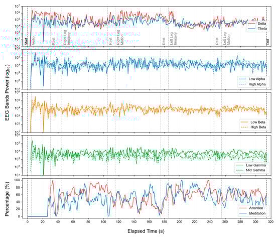 The dataset preserved the raw time-series signals alongside extracted features, including device-level cognitive indicators (attention and meditation) and relative spectral power across δ, θ, α, β, and γ frequency bands, consistent with the exploratory spectral analysis. This organization provided a balanced and labeled dataset suitable for supervised machine learning, while maintaining the necessary metadata to reproduce experimental conditions.