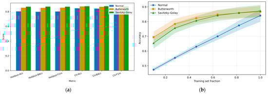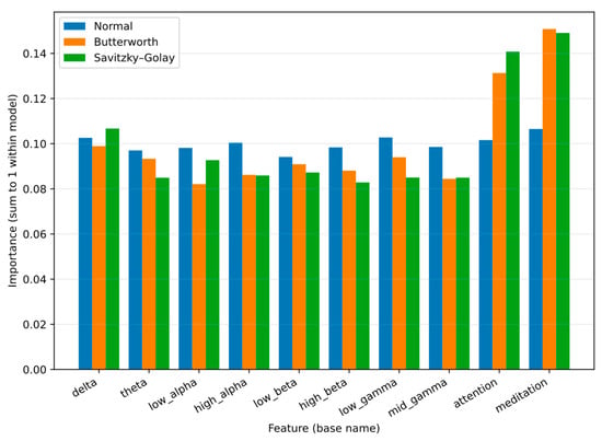 Another important avenue concerns advanced artifact removal. The filtering strategies implemented here (Butterworth and Savitzky–Golay) effectively improved spectral clarity and provided partial attenuation of low-frequency ocular activity and high-frequency EMG contamination. However, they cannot fully suppress non-neural noise. Techniques such as Independent Component Analysis (ICA) or Ensemble Empirical Mode Decomposition (EEMD) offer greater potential to isolate neural sources and reduce artifacts. Incorporating these methods could yield cleaner datasets, improving both the quality of extracted features and the reliability of classification.