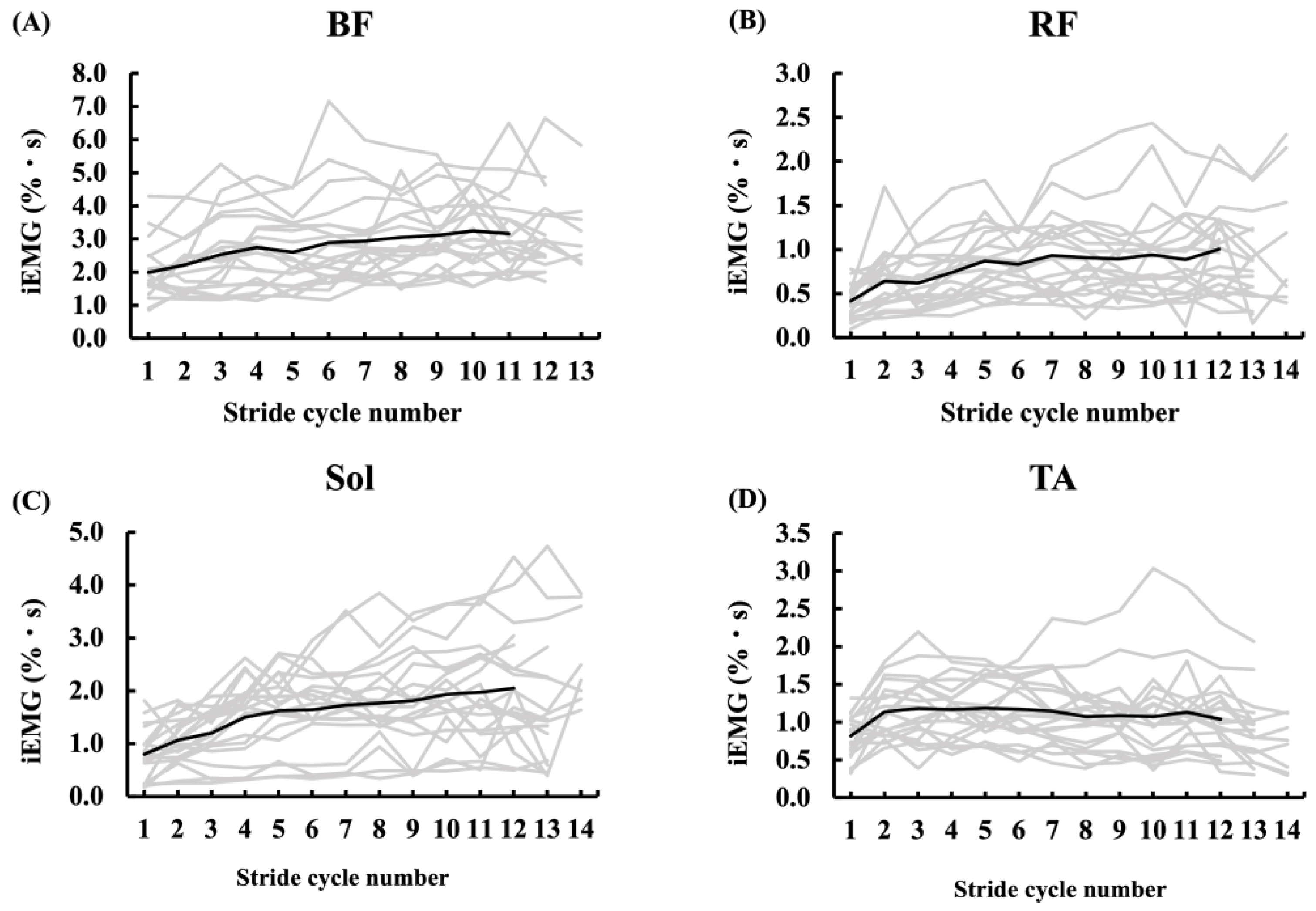 3.4. Muscle Activities During Sprinting
